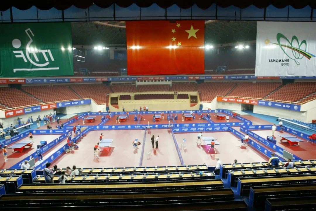 第48届世界乒乓球锦标赛期间的上海大舞台内景(来源:《解放日报》,周红钢摄)