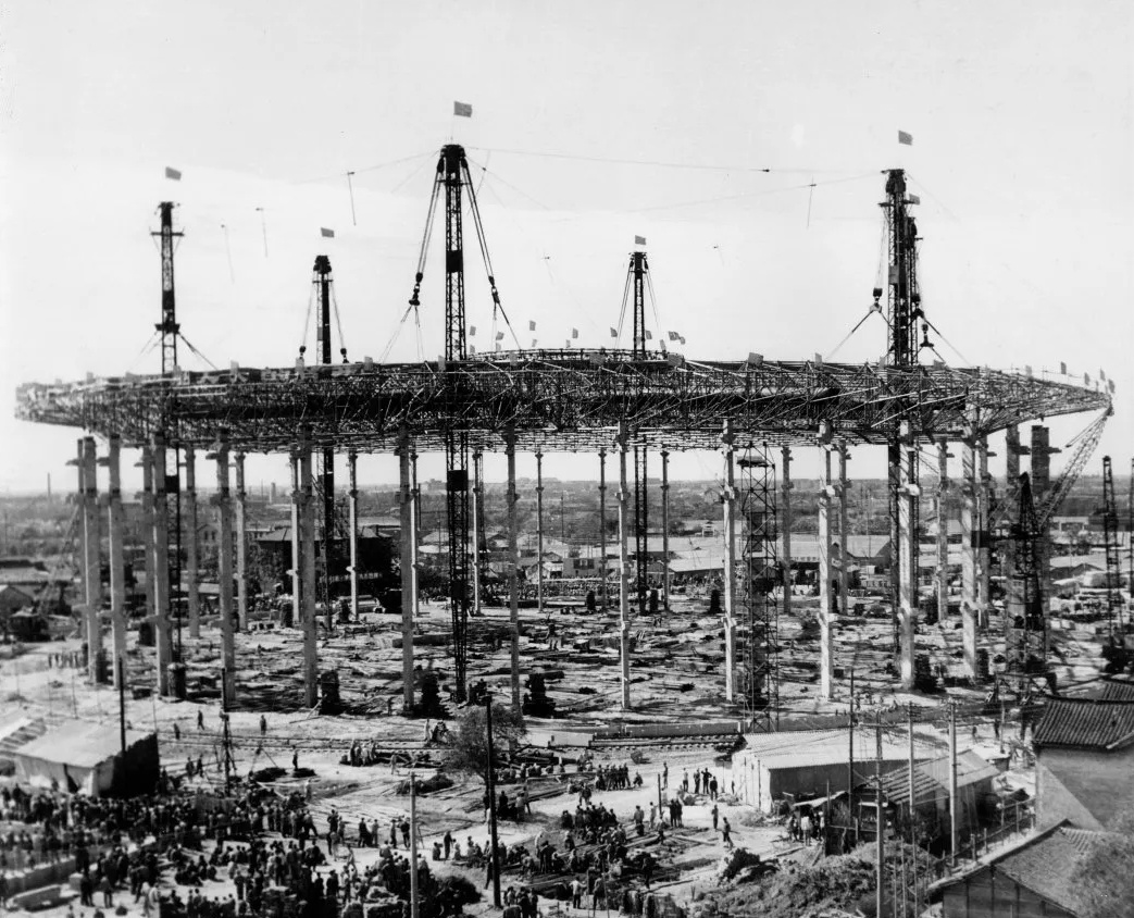 国家计划委员会批复当年,“万体馆”开工建设。因遇到三年困难时期,国家财力紧张,动工后不久,“万体馆”建设工程即告停顿。