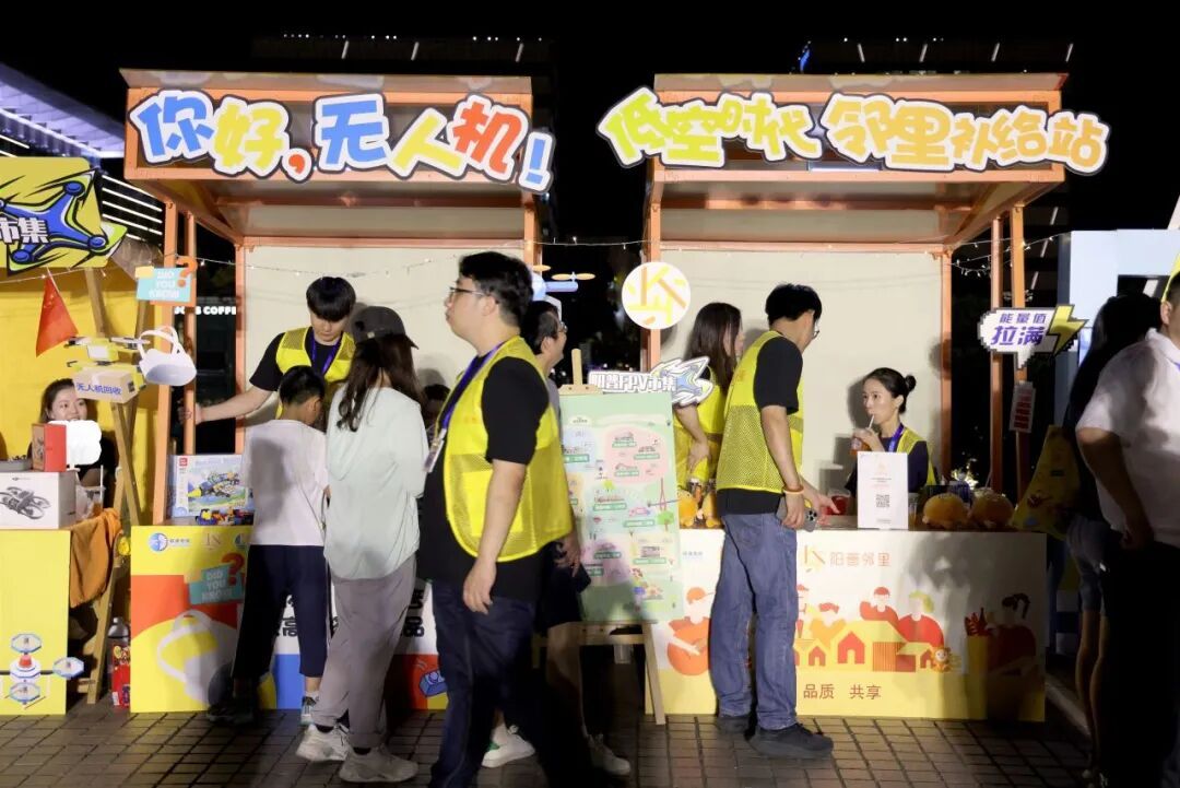 会场外的无人机主题文体商旅展集市,专业的无人机配件展示搭配文艺范儿与烟火气满满的“阳普FPV市集”吸引众多关注。