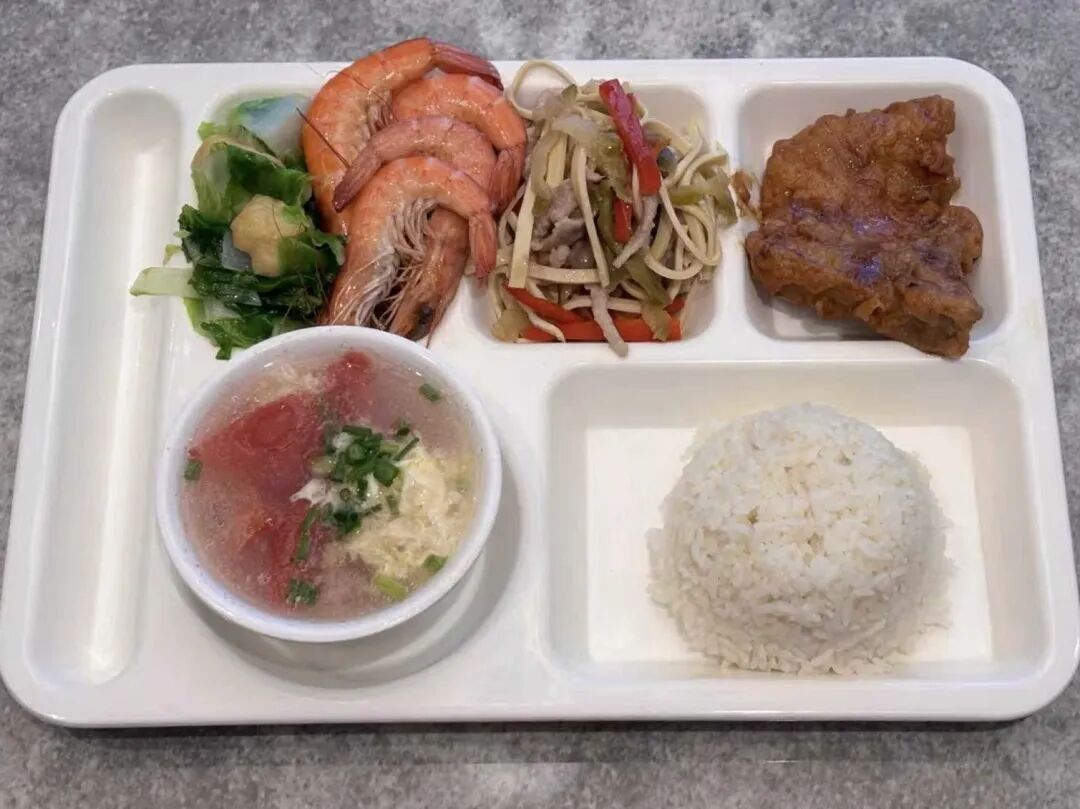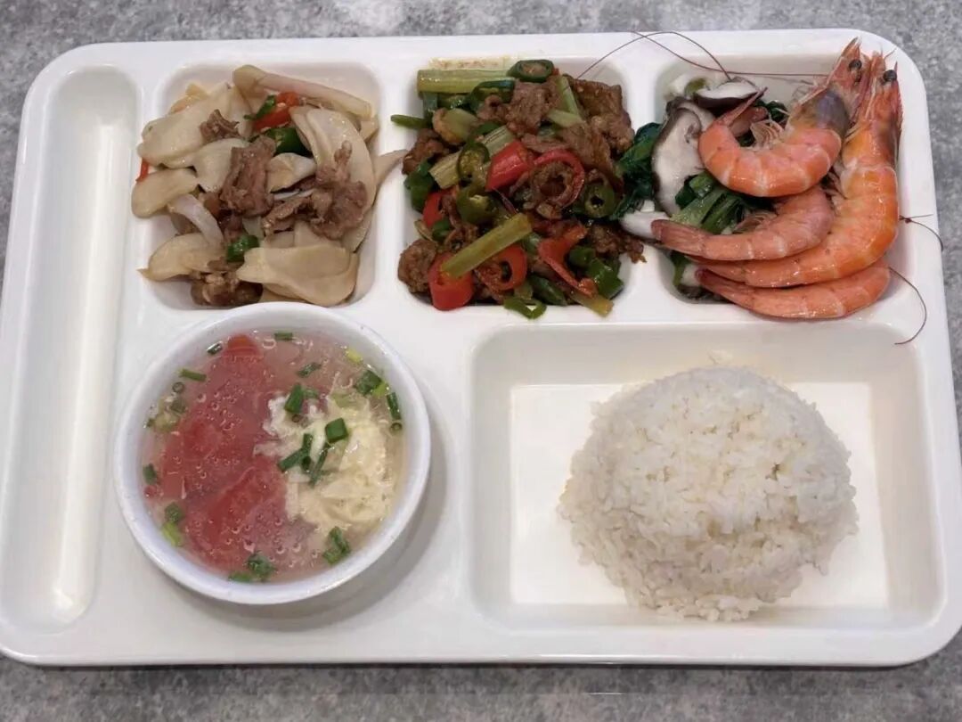 A套餐:红烧大排+盐水基围虾+榨菜香干肉丝+杭白菜油豆腐+番茄蛋汤