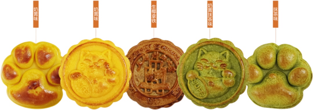 奶黄味、奶黄味、生椰拿铁味、奶黄抹茶味、抹茶味