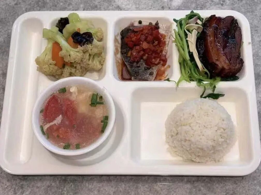 B套餐:剁椒青鱼块+上财红烧肉+干锅花菜+毛菜百叶丝+番茄蛋汤