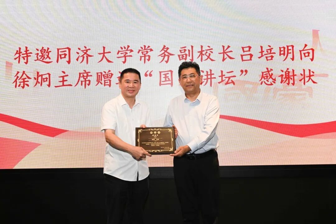 吕培明向徐炯赠送“国豪讲坛”感谢状