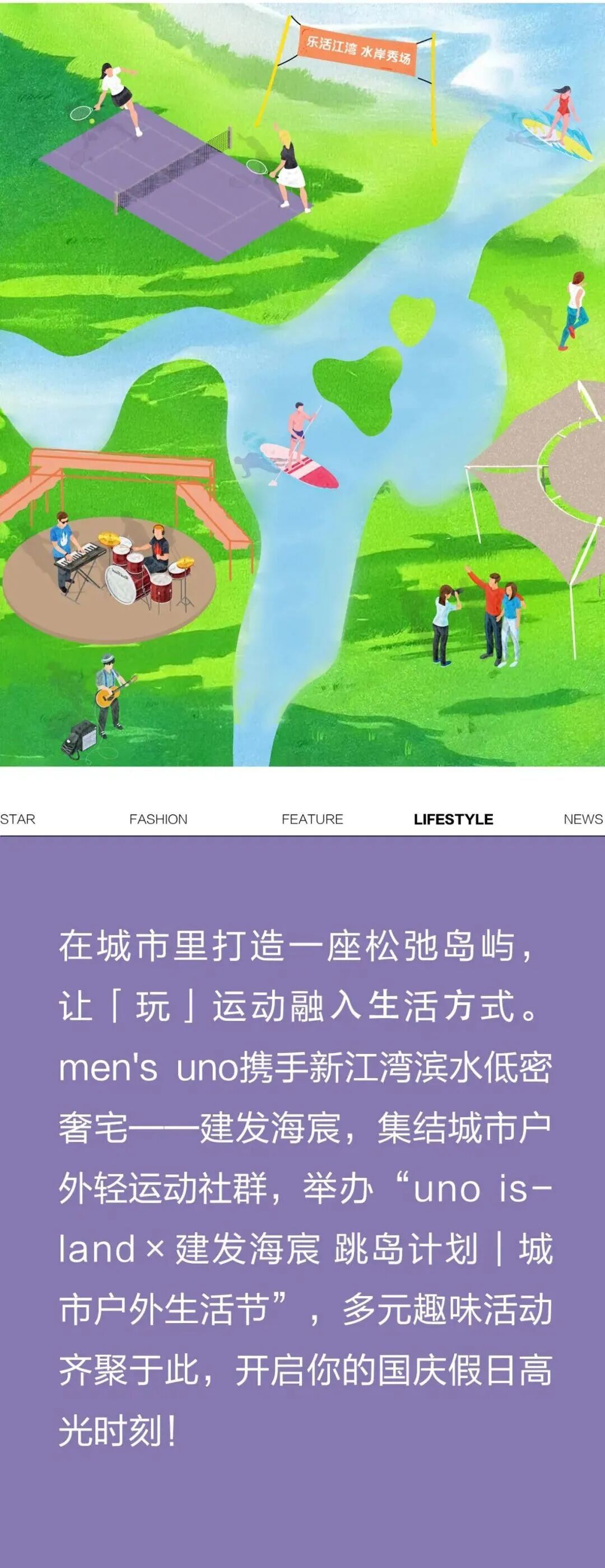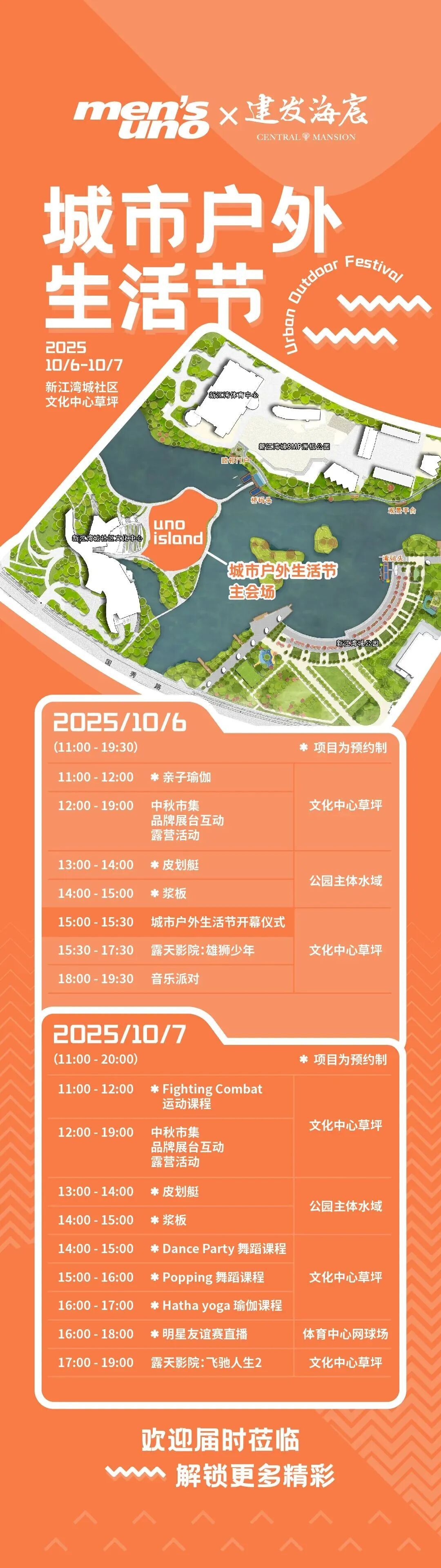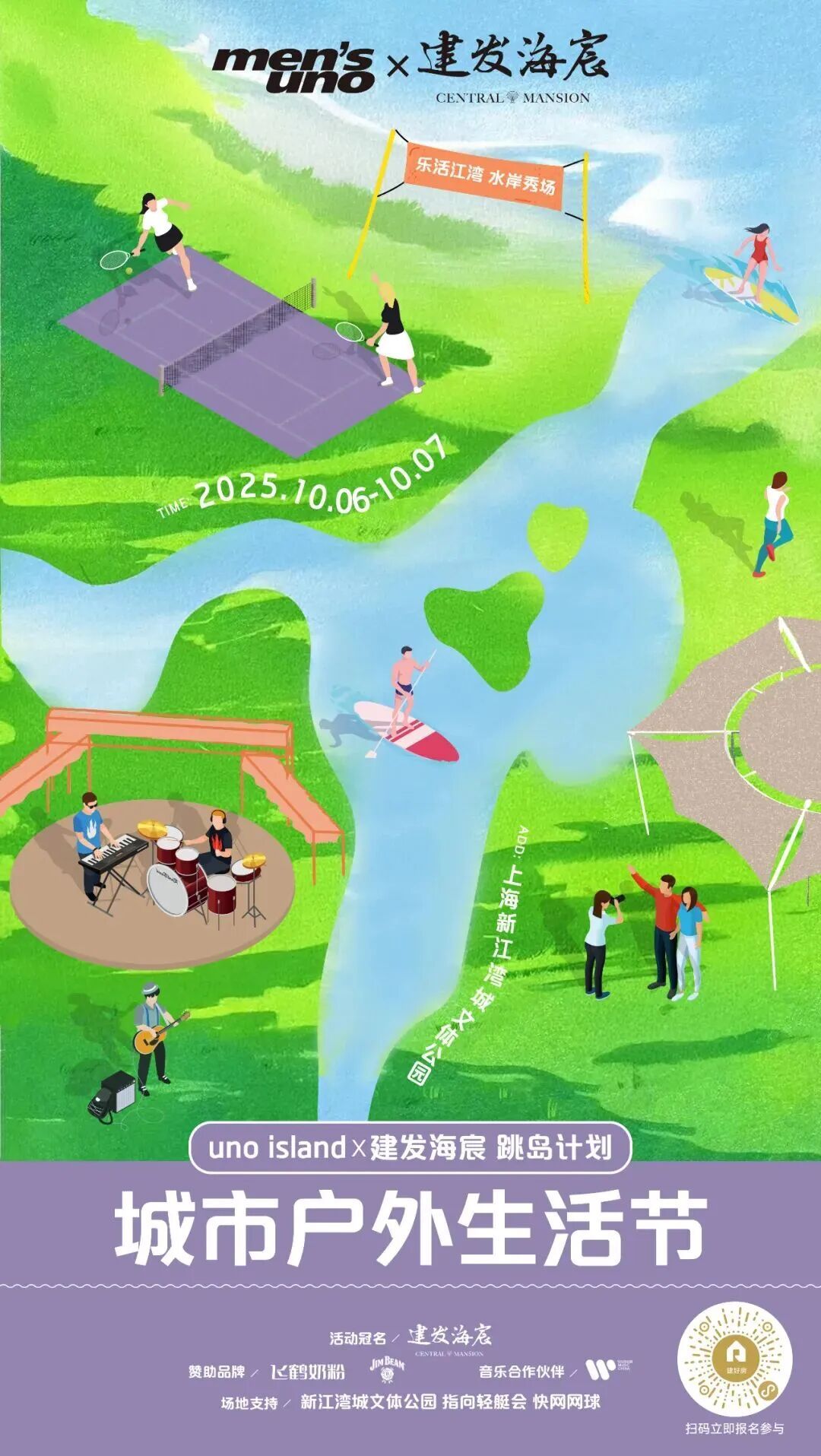 10月6日至10月7日“uno island ×建发海宸 跳岛计划丨城市户外生活节”将落地上海新江湾城文体公园,我们向所有渴望户外、热爱潮流、追逐自由的人发出邀请,这个国庆假日,邀你在城市中央邂逅野趣自然,体验户外乌托邦的惬意!