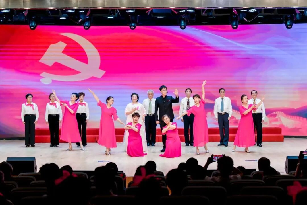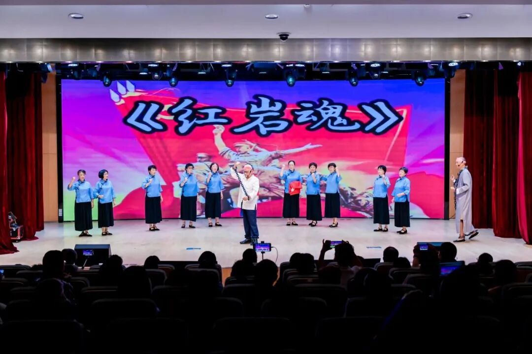 以红色基因为底色,涌动着对祖国的深情赞颂。商派软件有限公司职工的朗诵《乐美康健 活力无疆》,细数街镇变迁,赞美社区美好,传递企业参与社区共建的融合力量。平均年龄68岁的心联新康健社区合唱队,以一曲《映山红》唱出了岁月的厚重与对祖国的赤诚,承载银发心向党的深情。康健艺术团沪剧队则用极具地方特色的沪剧表演《唱支山歌给党听》,完成传统戏曲与红色情怀的温暖对话。康健艺术团合唱团演绎的《在太行山上》,气势恢宏,将现场气氛推向高潮。最终,全场观众挥动五星红旗,与演员齐声高唱《歌唱祖国》,让个人情感与集体荣光在此刻完美相融。