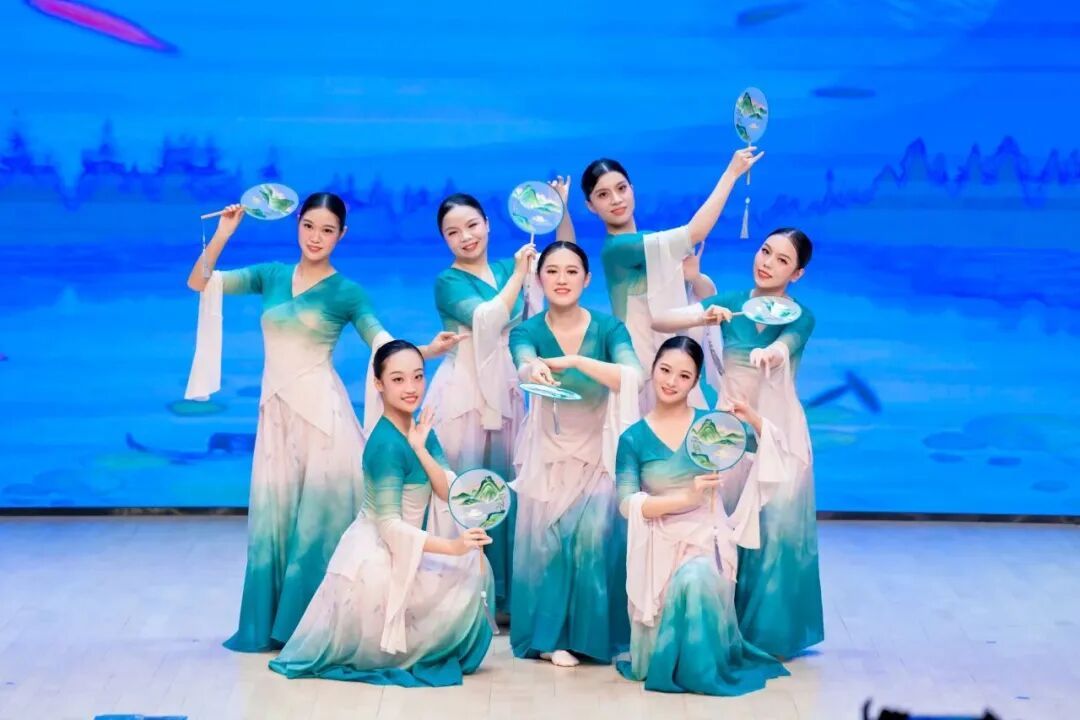 演出在康健街道党群服务中心工作人员带来的《天地龙鳞·康乐新趣》的歌舞串烧中热烈启幕。随后,区检察院的干警们一改平日严肃形象,以古典舞蹈《祥瑞中国 风雅江南》展现江南烟雨的温婉与灵动,实现职业身份与艺术表达的融合。康健外国语实验小学Combo合唱团的孩子们则通过鼓乐合唱《小雅鹿鸣》,以清澈童声再现周王宴请群臣的和乐场景,传递出古今礼乐文化的交融共鸣。街道侨联带来的汉唐舞《云扇舞穗》,舞姿端庄灵动,仿佛展开一幅千年古卷,让传统韵味与当代审美相融。这一篇章,是机关与社区、古典与时代在舞台上的深情对话。