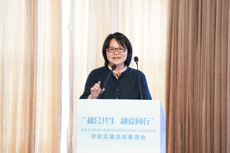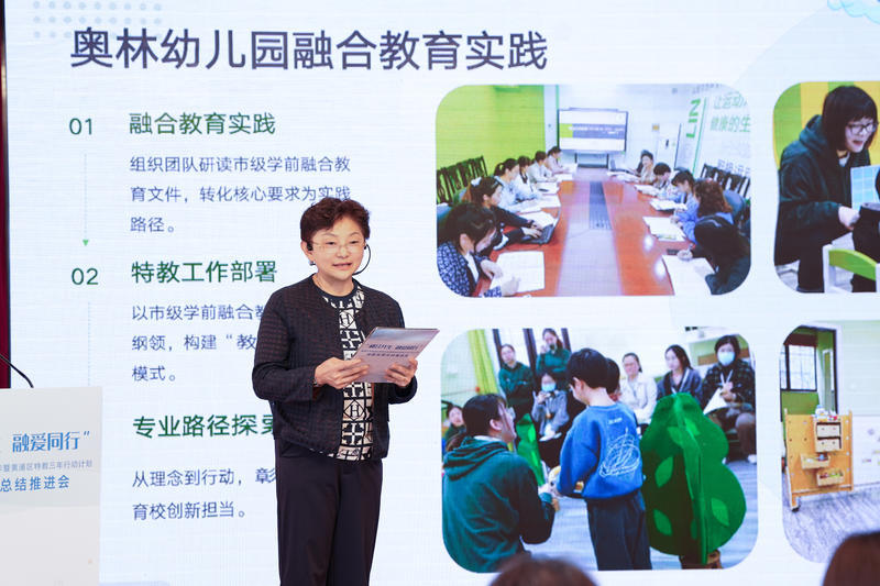 在本次活动中,学前特教指导中心俞丛晓回顾了黄浦学前特教三十年的发展历程。奥林幼儿园、西凌第一幼儿园、思南新天地幼儿园立足自身研究成果,分别围绕“一生一案”“教研破圈”“环境浸润”三大核心方向,分享了宝贵的实践经验。