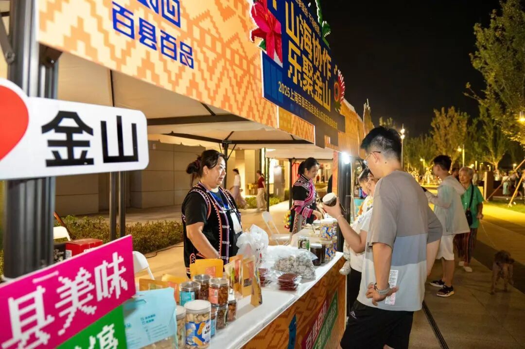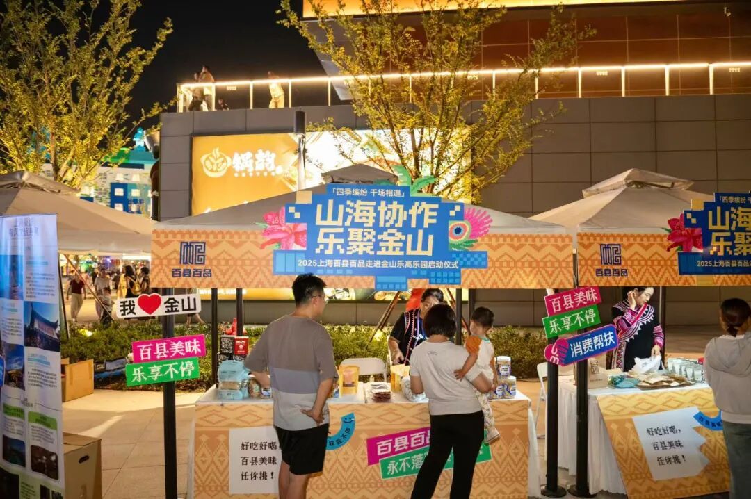 9月26日晚,山海协作 乐聚金山——2025“四季缤纷 千场相遇”上海百县百品走进上海乐高乐园启动仪式在爱琴海·缤纷里举行。此次活动由上海蔬菜集团有限公司(上海市消费帮扶工作平台)携手金山区政府合作交流办举办,旨在进一步深化对口帮扶工作,打造“线上线下永不落幕展销会”布局,围绕“协作帮扶促消费、促就业、平台企业助力乡村农文旅融合发展”等重点任务,将优质农特产品、非遗文创引入上海乐高乐园,让广大市民游客近距离领略对口地区的物产和人文。“帮扶渠道阵地正在转型,我们将充分借助上海乐高乐园等文旅IP的强大品牌效应和引流作用,继续深化消费帮扶+农文旅融合发展。”上海蔬菜(集团)有限公司总裁孙燕敏表示,年内将继续遵循“大稳定、小调整、延续性”原则,更新产品目录,同时,遴选申报主体推荐的产品也需完善联农带农和促进群众增收的有效机制。在百县百品市集上,各个特色展位整齐排列,陈列着云南建水紫陶、比顿咖啡、新疆生产建设兵团等优质产品。市民们有的在展位前品尝现冲咖啡,有的则仔细挑选特色干货。“我本身就是咖啡爱好者,知道云南咖啡很有名,本来想在网上买。这次正好有这样一个市集,就直接带回家了。”市民王女士说,“不仅能在家门口喝到云南咖啡,还能通过这种方式进行帮扶,我觉得很有意义。”现场,还设有互动游戏,以及还原了云南“有风小院”的场景,让游客沉浸式感受地方文化魅力。现场,随着嘉宾们上台启动活动,500架无人机升空,精准勾勒出“山海协作 乐聚金山”字样。上海石化企业负责人分享了企业在对口地区协作帮扶中的担当和责任,枫泾镇代表介绍了“枫暖童心·云飨共助”项目。值得一提的是,罗乐云飨·里厢(上海消费帮扶百县百品体验馆)在爱琴海·缤纷里启动运营。体验馆负责人曹东介绍,该店集展销、文化传播和旅游推广于一体,让市民游客们足不出“沪”就能享受到对口地区的地道山珍、特色好物。“体验馆主要以两大系列为主,一个是沉浸式体验,一个是文创产品,希望提升广大市民对上海对口地区农产品的认知度,扩大消费帮扶的影响力。”据了解,此次活动是消费帮扶与文旅IP深度融合的一次创新实践。金山区将继续深化与市消费帮扶平台及文旅企业的合作,推出更多特色活动,让合作发展的成果惠及更广泛群体。