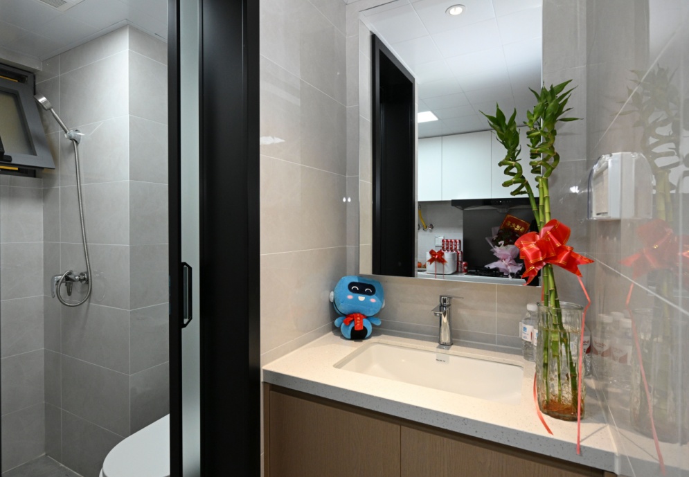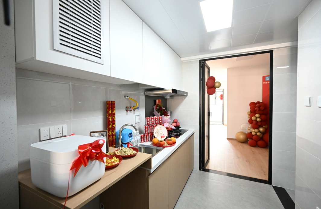 如今,旧改让一切变了样:两幢老楼原拆原建变成了一幢8层现代化住宅,建筑面积扩展到约8000平方米,172证居民全部实现“全装修交付”。顾兰妹阿姨的家原来只有一个使用面积19平方米的房间,现在房间没减小,多了独用的厨房和卫生间,还有一个小阳台——“政府免费给我们装了油烟机、煤气灶和马桶,一分钱不用我们出,心里别提多开心了!”