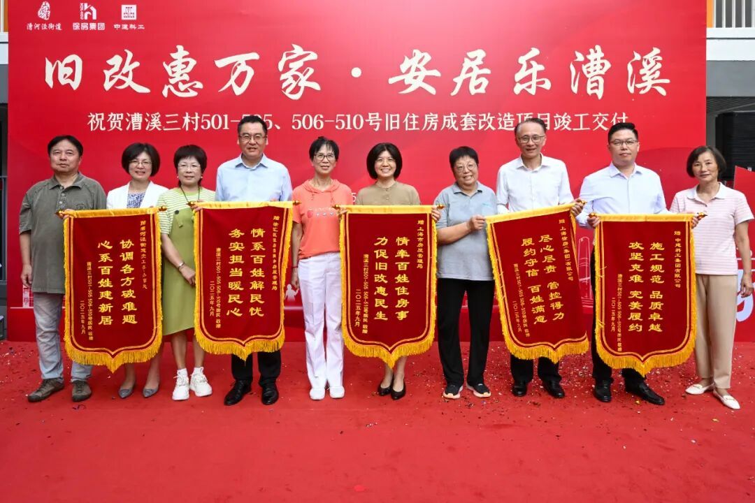 交付仪式上,居民代表捧着锦旗,送到市房管局、区房管局、漕河泾街道、徐房集团、中建科工等单位手中——“感谢党和政府,圆了我们的安居梦!”