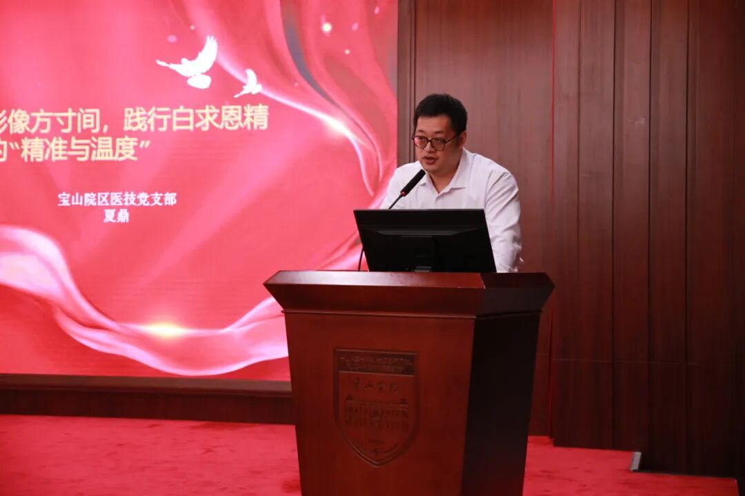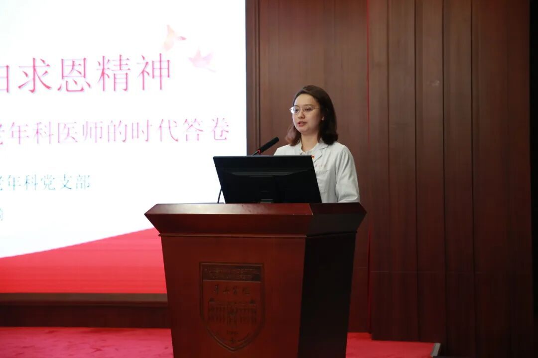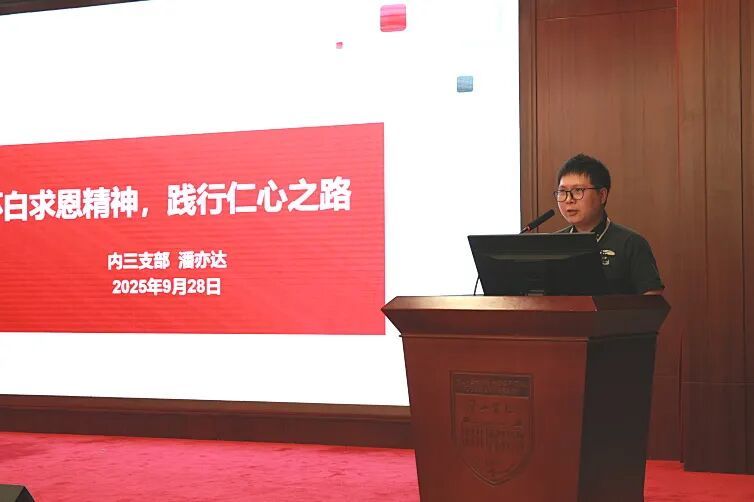 10个支部的党员代表也通过微党课形式,结合岗位实践阐述对白求恩精神的理解。临床、医技支部结合诊疗场景,强调在中西医协同、药品调剂、影像检查等工作中践行“精准与温度”的统一;护理与老年支部则立足专科特色,提出通过个性化照护、全周期健康管理等方式,融入老年照护与重症护理实践,凸显人文关怀;职能科室支部聚焦专业效能,提出通过精准数据分析优化资源配置。各支部的分享从临床一线到职能保障,从服务优化到技术创新,以日常工作中的点滴行动,诠释了“做人民好医生”的时代内涵,彰显了医务工作者以专业践行初心、以行动诠释使命的责任担当。