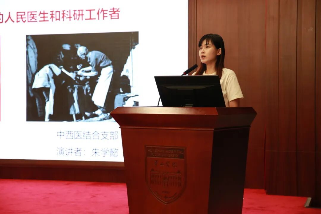 在事迹分享环节,感染科党支部分享了“白求恩奖章”获得者翁心华教授的从医经历。作为我国感染病学领域泰斗,翁教授深耕感染病学领域数十载。他带领团队建立的“疑难感染多学科会诊体系”,推动学科诊疗水平跻身国际前列,生动践行了“对技术精益求精”的职业追求。“传染病防治事业是艰苦、有风险的,但毕竟要有人去做”,引发在场党员强烈共鸣。