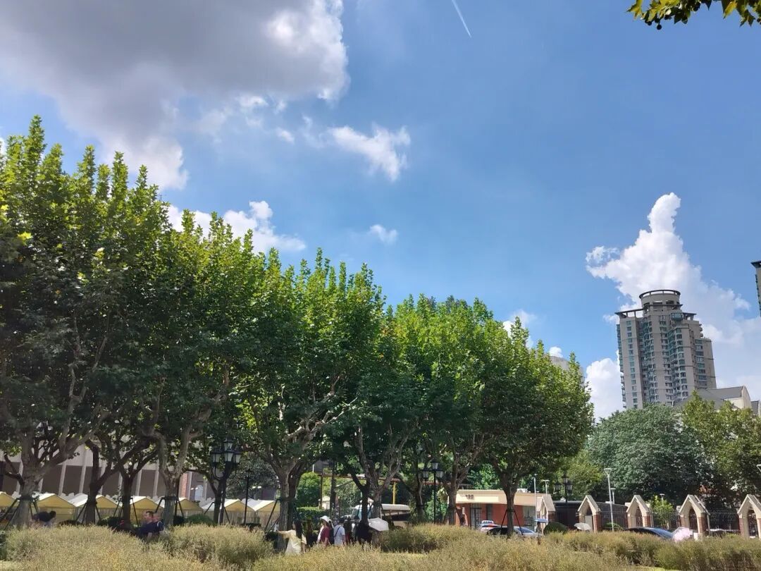 上午十点,徐家汇书院广场人来人往,不少路人撑起遮阳伞以抵御阳光的照射。市民王阿姨告诉记者:“没想到快10月了,上海的天气还是那么热,一点秋天的感觉都没,也没有风,出来走走汗水不停。”