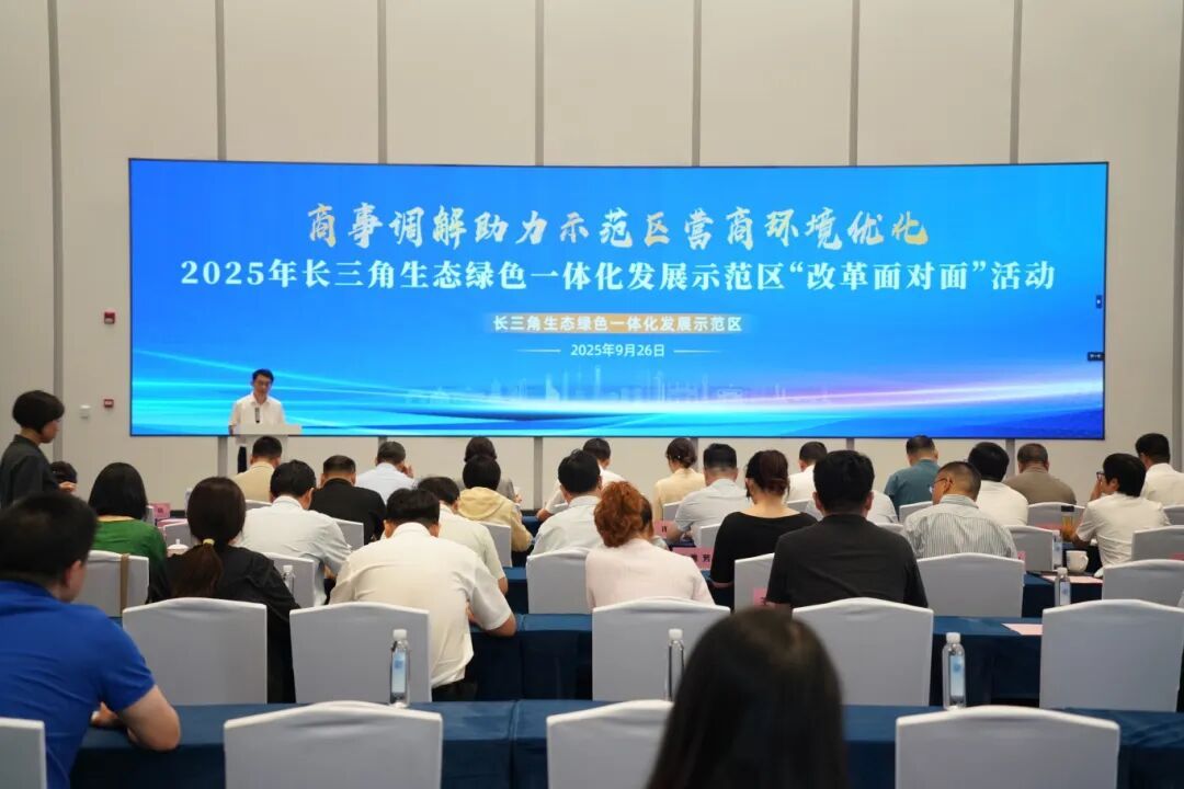 作为国际社会广泛认可的商事争端解决方式,商事调解对营造市场化、法治化、国际化营商环境至关重要。9月26日,以“商事调解助力示范区营商环境优化”为主题的2025年长三角生态绿色一体化发展示范区“改革面对面”活动在水乡客厅·方厅水院举办。示范区执委会副主任黄鸿鸿出席。示范区执委会、沪苏浙皖三省一市司法与法院系统、两区一县相关部门负责人参加。