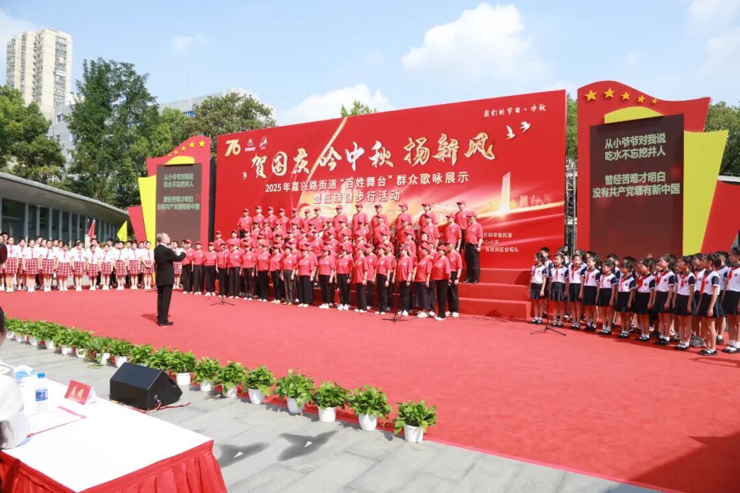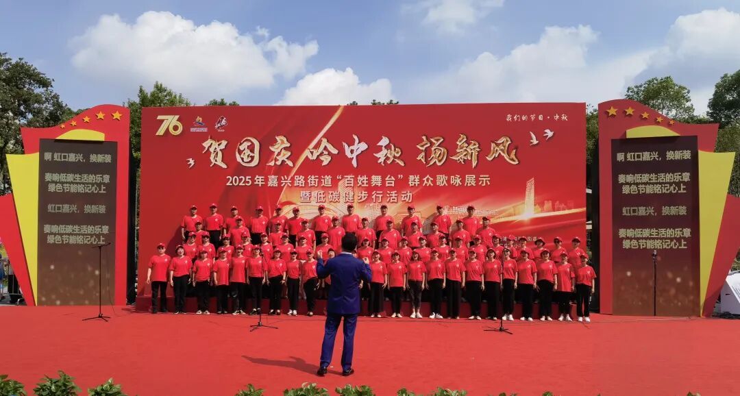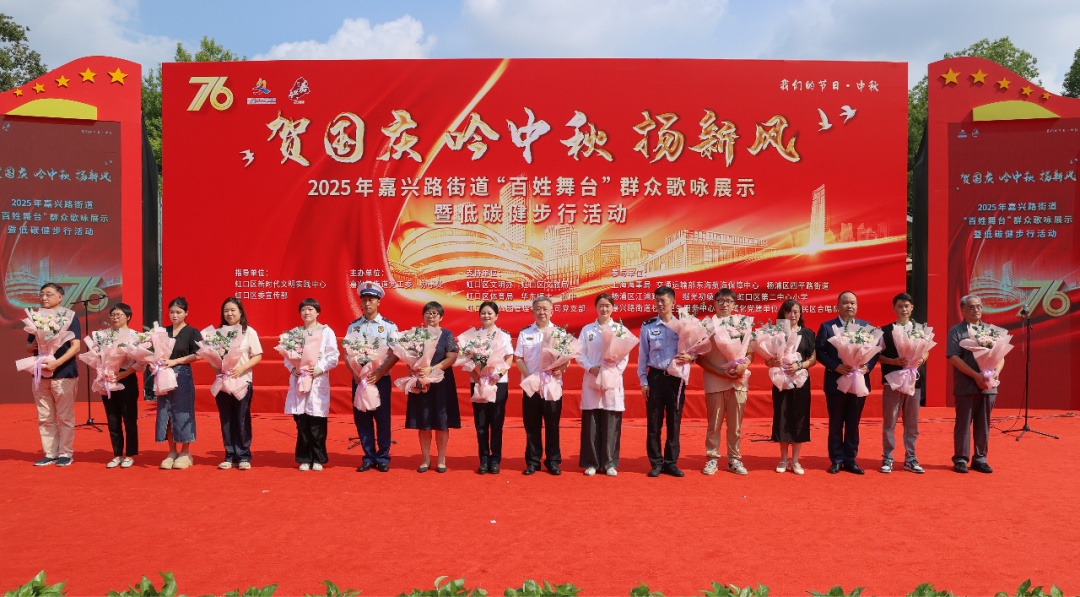 9月28日,嘉兴路街道“贺国庆、吟中秋、扬新风”2025年“百姓舞台”群众歌咏展示暨低碳健步行活动在和平公园举行。 现场启动了嘉兴路街道“思响嘉”之“嘉文博讲”宣讲项目。该项目将邀请高校博士生宣讲团加入,更好地宣传文明实践调研成果,推动实践成果传播转化。活动中,来自瑞邻社区营造发展中心的负责人和华东师范大学第一附属中学的师生代表介绍了近期开展的社会实践项目成果。这些项目围绕低碳生活、街区发展、社区资源和友好社区建设,为构建多元共治的新格局注入蓬勃的青春动能。 活动现场举行了原创社区歌曲《嘉园新时尚》首发仪式。这首由嘉兴路街道策划,优乐合唱团、环瑞虹合唱团演唱的作品,生动刻画了街道的人文风貌与社区特色,融入了对低碳生活、美好家园的向往。 活动中还向全国先进工作者、市三八红旗集体、共建单位、新兴领域、新就业群体、文明实践志愿者等16位来自不同领域的优秀代表献花,感谢他们为社区建设、祖国强盛作出的贡献。 活动中,近千名参与者齐聚和平公园,用歌声礼赞祖国,营造了喜庆祥和的节日氛围,展现了街道推动精神文明与生态文明协同发展的创新成果。 嘉兴军鼓队:《走向复兴》 继光初级中学、虹口区第二中心小学学生合唱团,优乐合唱团,环瑞虹合唱团,如歌合唱团:《在灿烂的阳光下》 继光初级中学、虹口区第二中心小学学生合唱团:《少年先锋队队歌》 猎户座文化人才、国家二级演员钱晏,共建单位代表,外企白领代表,环瑞虹合唱团,街道合唱团和居民区合唱团:《相亲相爱一家人》 上海海事局、交通运输部东海航海保障中心、嘉兴路街道社区卫生中心等区域化党建单位、“环和平公园悦读街区”党建引领“共比邻”项目共建单位:《我和我的祖国》 优乐合唱团、环瑞虹合唱团、嘉韵舞蹈队:歌伴舞《江山》 街道“闪闪红星”宣讲团、街道党员代表、虹口区女企业家代表、居民群众代表:音乐诗歌《天耀中华》 最后,全场观众共同高唱《歌唱祖国》,用歌声汇聚成一片深情澎湃的红色海洋。活动结束后,市民们从和平公园1号门广场出发,参与环和平公园低碳健步行。大家以脚步丈量绿色,用行动倡导低碳。 “重走光影市集、唤醒老街记忆”2025年嘉兴路街道优秀摄影作品展同步举行。展览系统梳理并呈现了嘉兴路街道多年来的变迁脉络,通过一组组珍贵影像,生动回顾了从昔日上海中心城区“最大棚户区”到今天“上海最佳城市更新地标”的华丽蜕变。 嘉兴路街道将以此次活动为起点,持续汇聚青春、邻里、人才、文化力量,让美好嘉园的故事不断续写新篇,为建设“美丽虹口”贡献“嘉园”力量。 区委常委、宣传部部长吴强出席活动,并为低碳健步行活动鸣笛发令。
