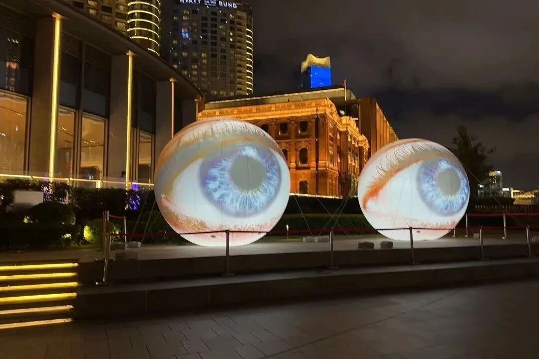 北外滩滨江的《OCULUCIS》光影艺术装置,更是呼应了区域历史记忆和未来期许。百年前,虹口见证了第一批留法勤工俭学青年启程,拉开近代中国人主动“睁眼看世界”的序幕。如今,这个由意大利艺术家Hermes Mangialar创作的巨型“双眼”装置,象征着“历史与未来对望、人类与城市共情”,为北外滩注入跨越时空的人文温度。