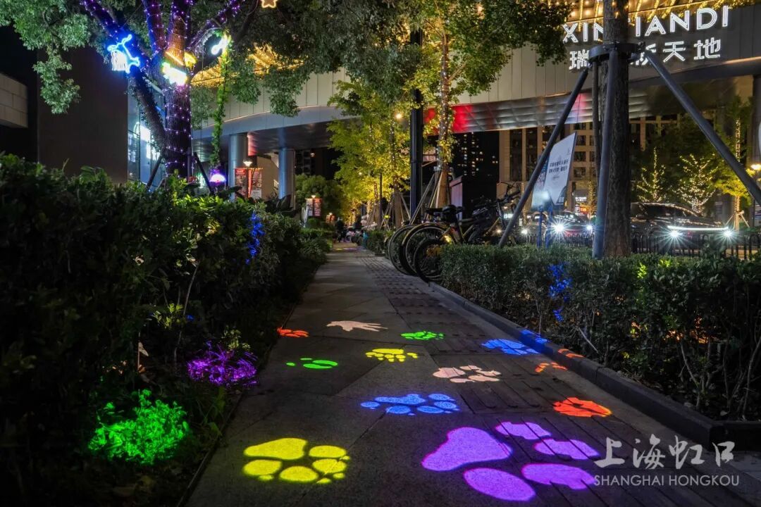 此外,虹口还在“一江一河”展示带,依托滨水空间贯通开放与北外滩楼宇景观照明的建设成果,打造北外滩作为中国式现代化重要展示窗口的宣传阵地。而在瑞虹新天地生活圈,瑞虹路景观灯光串联起瑞虹新天地与和平公园的光影通道,同时,围绕和平公园上海碳秘馆,设置“光能循环”光影装置与“生态之光”建筑投影秀,让“生态循环”理念随光影渗透进生活场景。