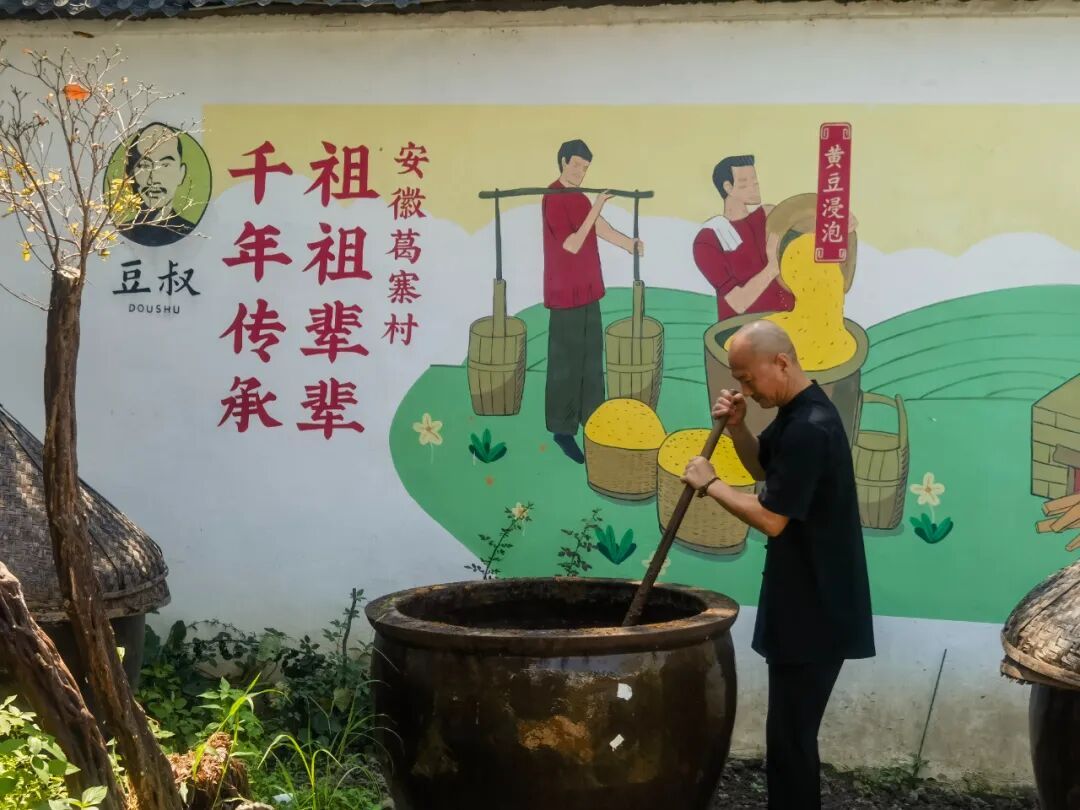 在位于永丰街道的“豆叔”企业总部,记者见到了身着一身黑色太极服的“豆叔”葛纯友。他正掀开摆放在花园里的一口口大缸,用一根大木棍依次搅动里面的发酵物,豆酱的醇厚香气飘散出来。“这是用我们基地自种大豆酿造的酱油。”葛纯友一边搅动一边介绍,“我们坚持‘大豆回归’的理念,从种子开始到种植、发酵、酿造,全程可控,这样才能保证酱油最本真的味道。”