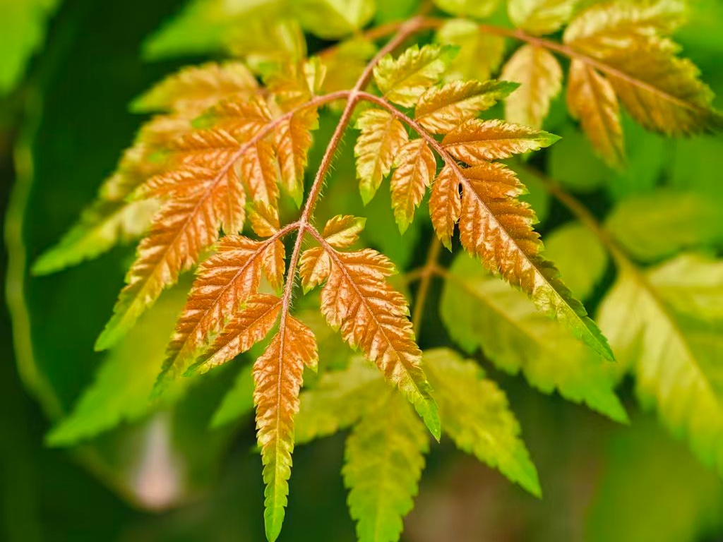 绿叶尚未褪去盛夏的热烈,黄叶已悄然爬上枝头,晕染出秋的轮廓。这一场无声的渐变,是夏天与秋天之间最温柔的交接。风起时,叶片轻颤,沙沙作响——那是季节在轻轻翻页。
