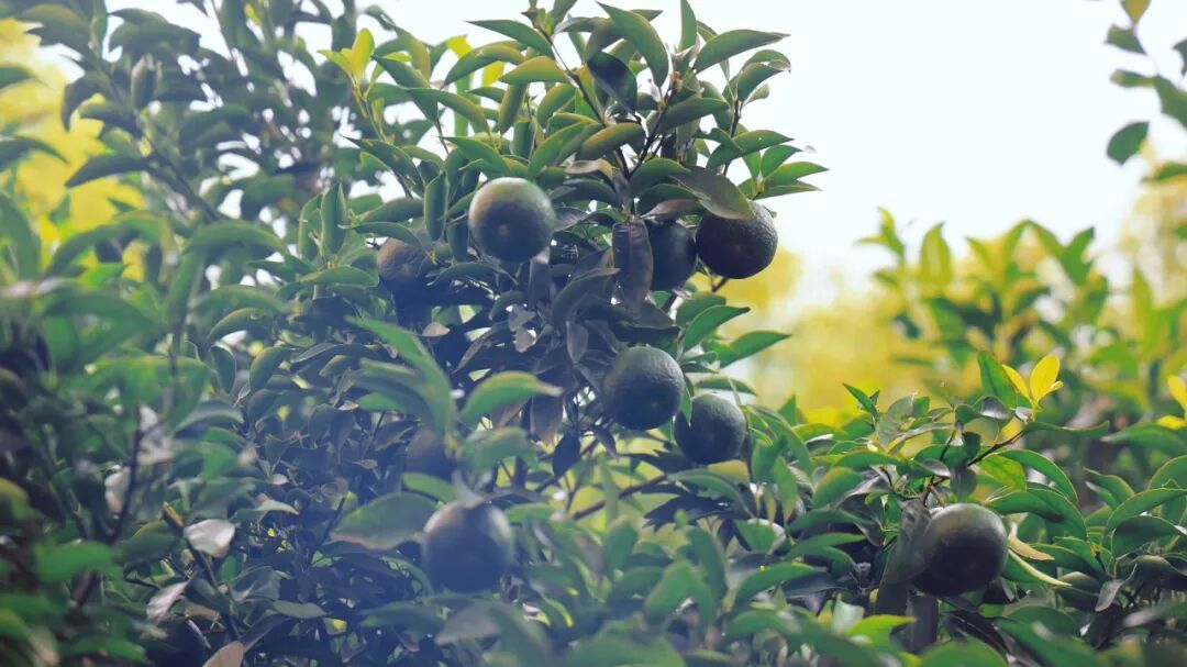 枝头的橘子初尝秋意,青涩中透出淡淡的微黄。它不急于成熟,在“秋老虎”的余温里,静静积蓄着甜意。