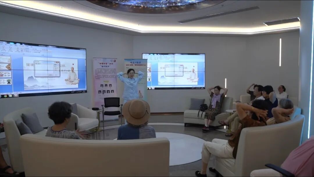 与传统八段锦不同,坐式八段锦不需要专业场地,无需起身腾挪,在沙发、轮椅甚至办公椅上就能完成;动作如春风拂柳般和缓,有效规避了老年人运动损伤风险,对高血压、糖尿病等慢性病患者的康复大有裨益。现场,针对颈肩腰等“劳损重灾区”的按摩手法特别受欢迎。