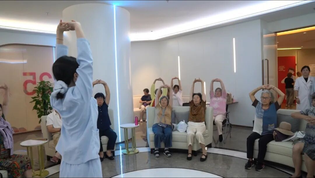一位居民阿姨笑着说:“我关节不好,站着练操容易头晕,这个坐着练的版本太合适了!才练十分钟,肩膀就松快多了。”