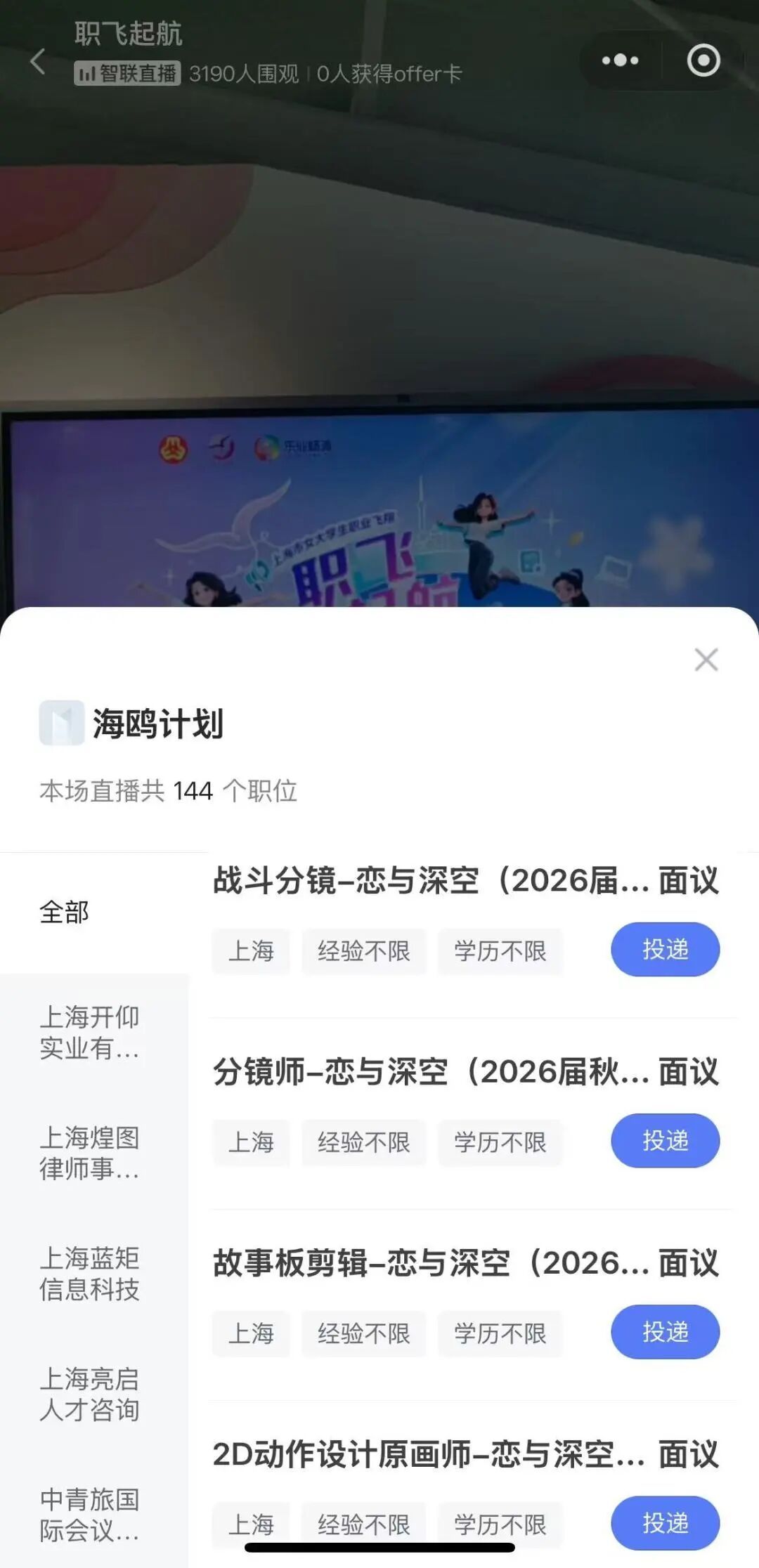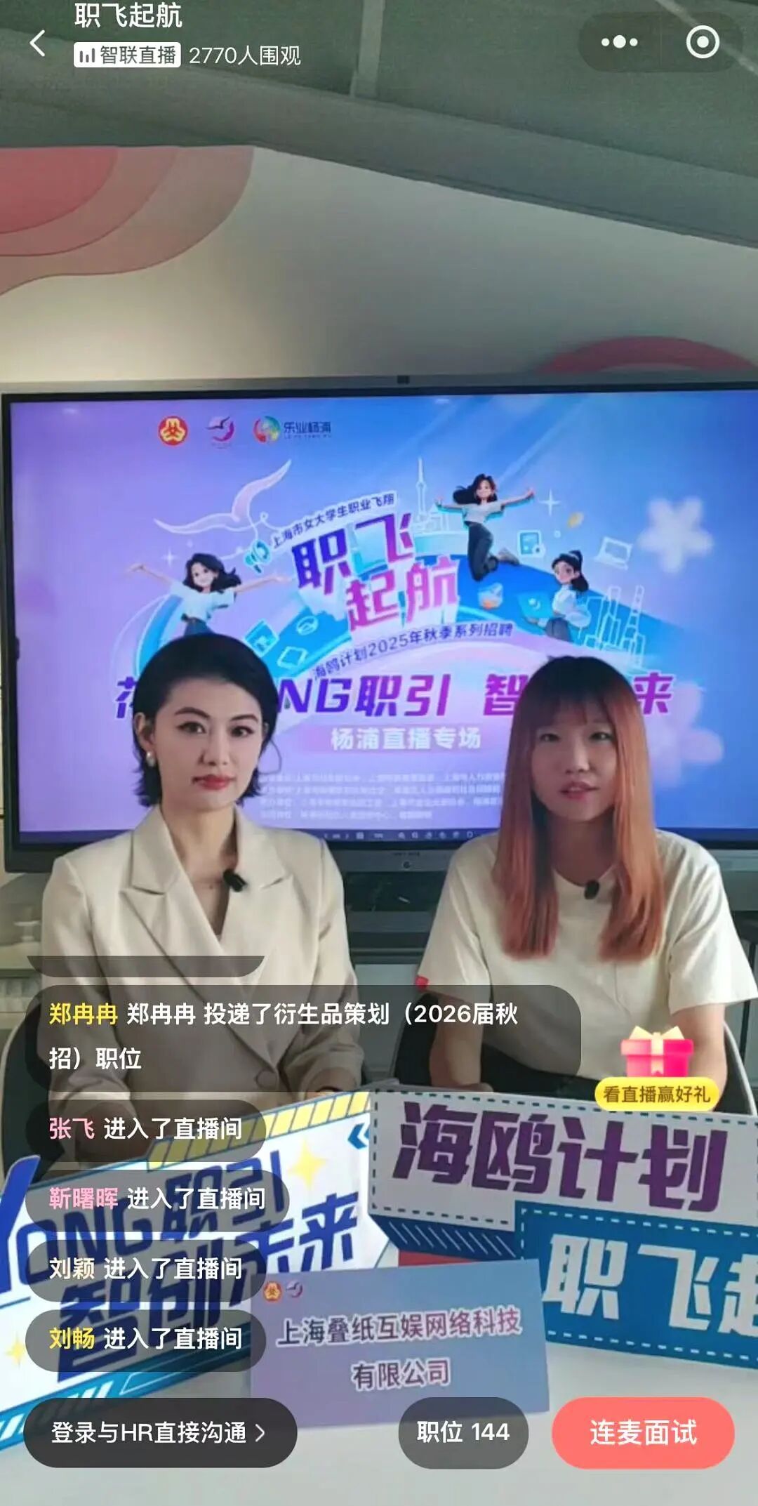 “我们公司这次主要招聘游戏策划和美术类岗位,欢迎热爱创作的同学加入!”在“花YOUNG职引”的直播间里,上海叠纸互娱的HR话音刚落,评论区的提问就刷了屏。