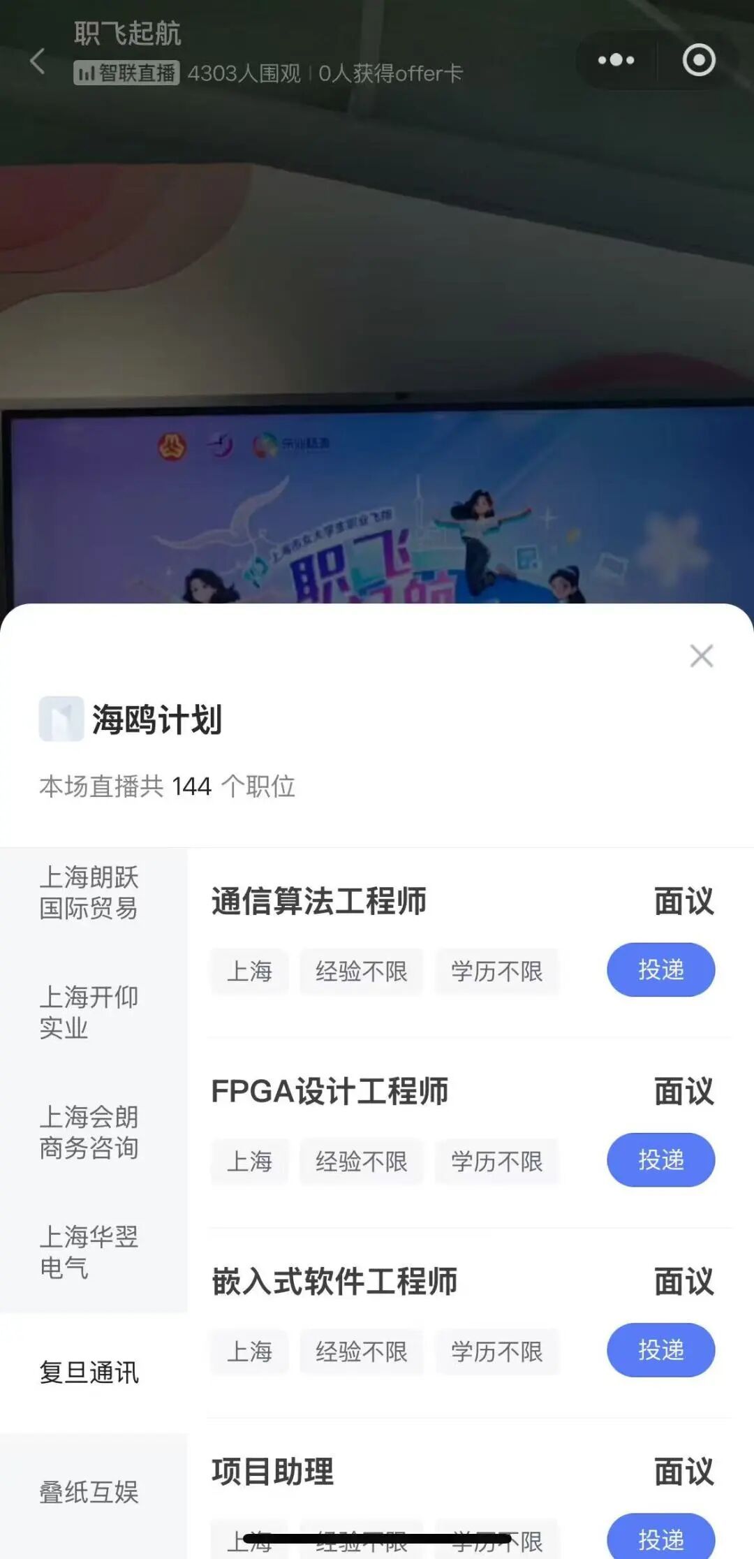 与传统线下招聘会“广撒网”的模式不同,数字化直播招聘展现出了惊人的效率和覆盖面。“直播效率高,覆盖面广。以前我们进校园办专场,一次只能覆盖一所学校。现在通过直播,我们能把杨浦的优质企业资源一次性推送到全市高校,直接打破了地域限制。”公益项目“海鸥计划”策划人、上海市女企协副会长蔡婷一语道破了直播招聘的核心优势。