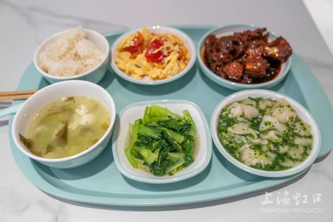 第一顿午餐,食堂推出了25道菜,红烧肉虎皮蛋、响油鳝丝、元宝大虾、油浸鲳鱼、红烧大排、四喜烤麸、黄芽菜油豆腐、刀豆土豆……基本都是上海人家饭桌上常见的家常菜,符合老年人的口味,菜价也比较实惠,大荤20元左右,小荤10元左右,素菜5-8元,老年人还能享受折扣优惠。