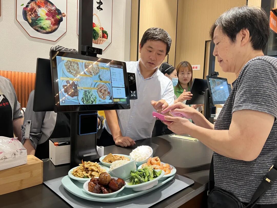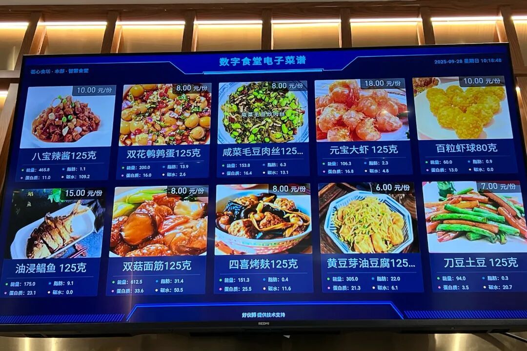 记者在现场看到,荟心食坊充分融合适老化与数字化特色,所有桌椅均采用适老化设计,材质柔软并配有扶手,还设有无障碍卫生间。数字食堂电子菜谱,不仅标明菜价,每道菜的克数、能量、脂肪、蛋白质、碳水含量都标识的清清楚楚,倡导食客健康饮食、合理搭配。智慧结算系统,则通过视觉识别技术自动识别菜品价格,提升结算效率与准确性。