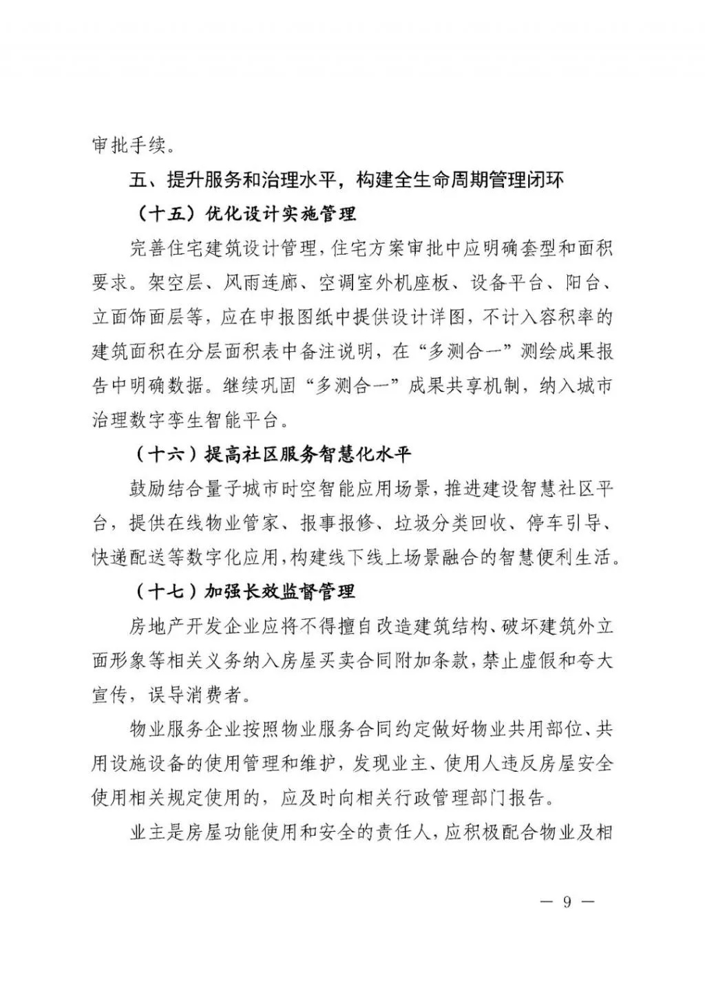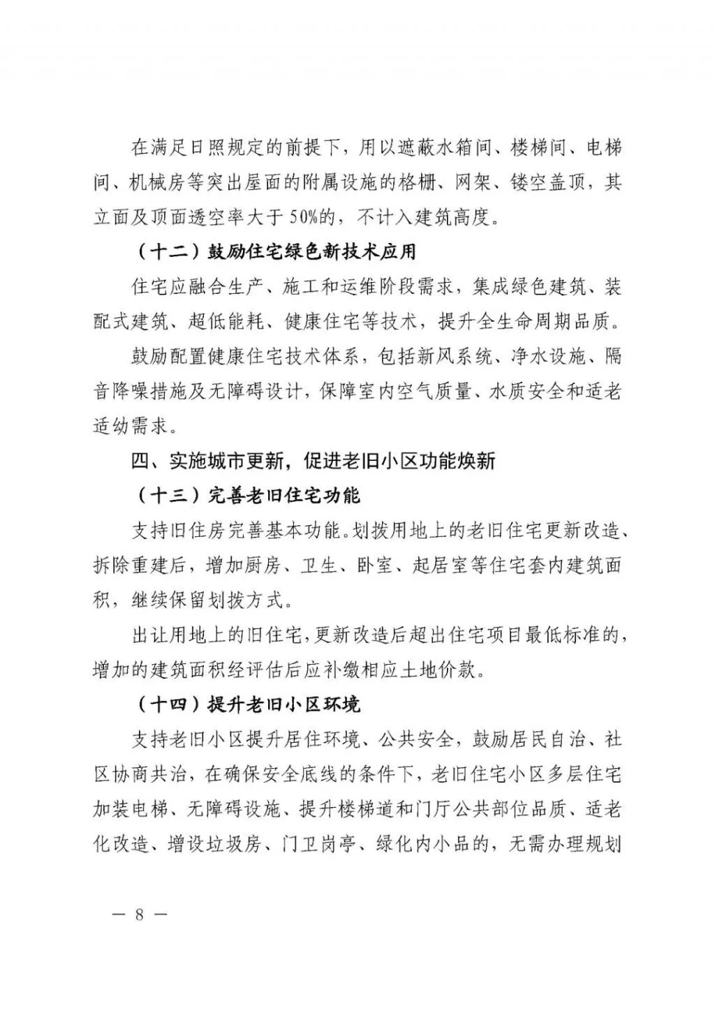 在提升老旧小区环境方面,意见指出,支持老旧小区提升居住环境,在确保安全底线的条件下,老旧住宅小区多层住宅加装电梯、无障碍设施、提升楼梯道和门厅公共部位品质、适老化改造、增设垃圾房、门卫岗亭的,无需办理规划审批手续。