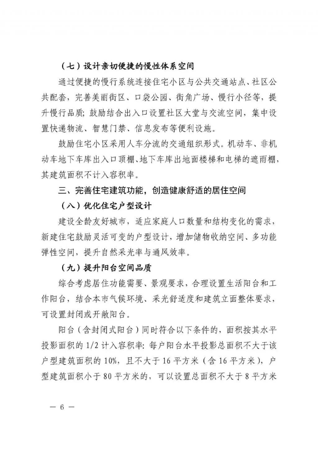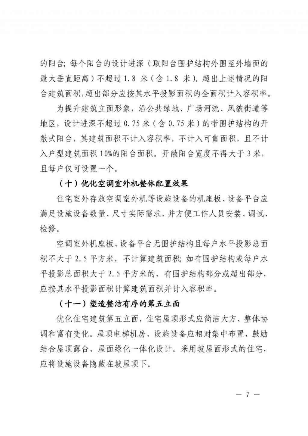 此外,意见还规定,沿公共绿地、广场河流、风貌街道等地区,设计进深不超过0.75米(含0.75米)的带围护结构的开敞式阳台,其建筑面积不计入容积率,不计入可售面积,且不计入户型建筑面积10%的阳台面积。开敞阳台宽度不得大于3米,且每户仅可设置一个。