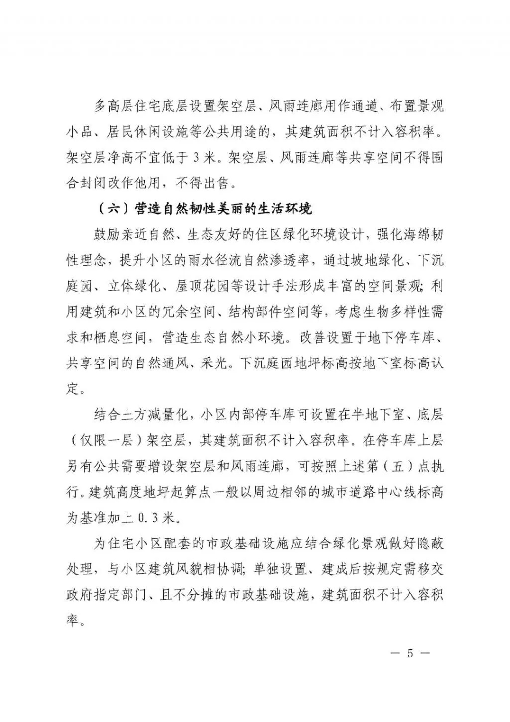 意见还鼓励住宅小区采用人车分流的交通组织形式,机动车、非机动车地下车库出入口顶棚、地下车库出地面楼梯和电梯的遮雨棚,其建筑面积不计入容积率。