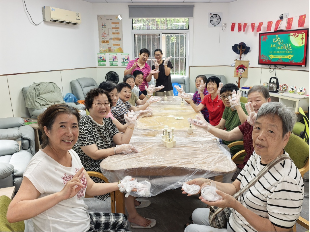 中秋佳节,吃月饼是中华民族的传统习俗,它承载着深厚的文化意蕴和团圆的美好寓意。在此次活动中,冰皮月饼制作成为各站点欢度双节的亮点,为老人们带来了满满的节日仪式感。在工作人员的精心准备和示范下,老人们积极参与,亲手制作月饼,从和面到包馅,再到压花成型,每一个环节都洋溢着热情与专注。老人们在制作过程中不仅体验了动手的乐趣,还享受了品尝自己劳动成果的喜悦,团圆的温馨在欢声笑语中弥漫开来。