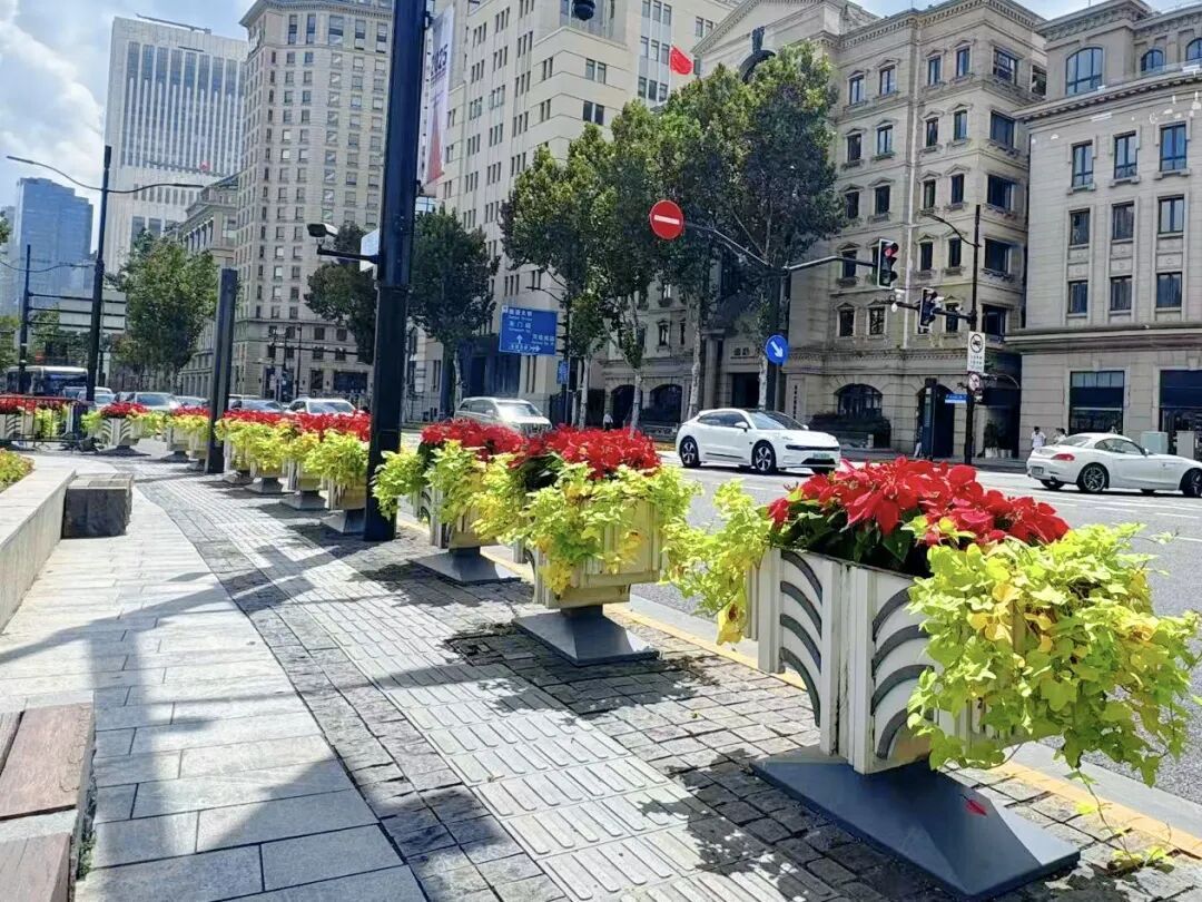 随着国庆与中秋双节的脚步日益临近,为营造喜庆祥和的节日气氛,黄浦区绿化部门在人民广场、新天地、外滩、淮海路等重点区域公园、绿地内倾注巧思打造特色景观。那一片片跃动的 “中国红”,不仅扮靓了黄浦的街头巷尾,更将对祖国繁荣昌盛的真挚祝愿,融入城市的每一处风景里。