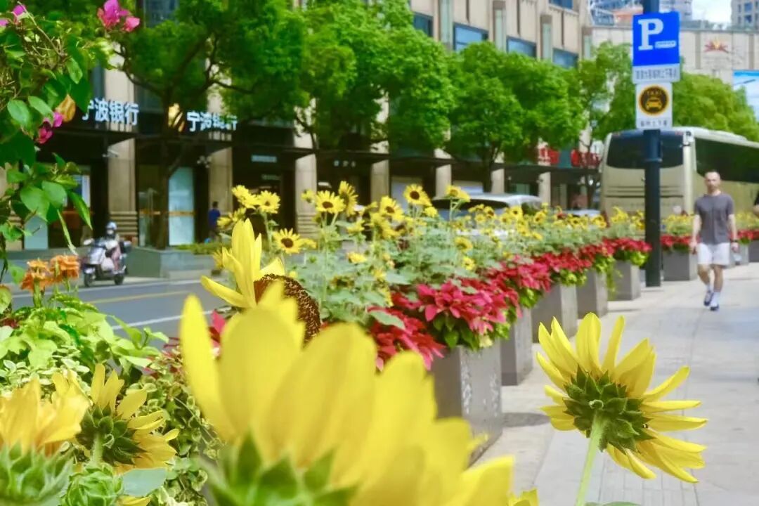 新天地区域花箱以多彩植物营造亮眼景致,鸟尾花舒展娇姿,圣诞花燃起点点艳红,三角梅缀满枝头,变叶木以斑斓叶色增添层次,向日葵更添向阳活力。各色元素相融,在阳光下绽放出夺目光彩,让每一处花箱都成为街头亮眼的风景。