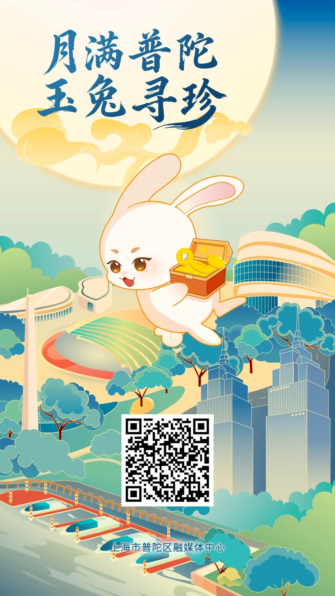 扫描海报中的二维码,进入“月满普陀 玉兔寻珍”H5互动。