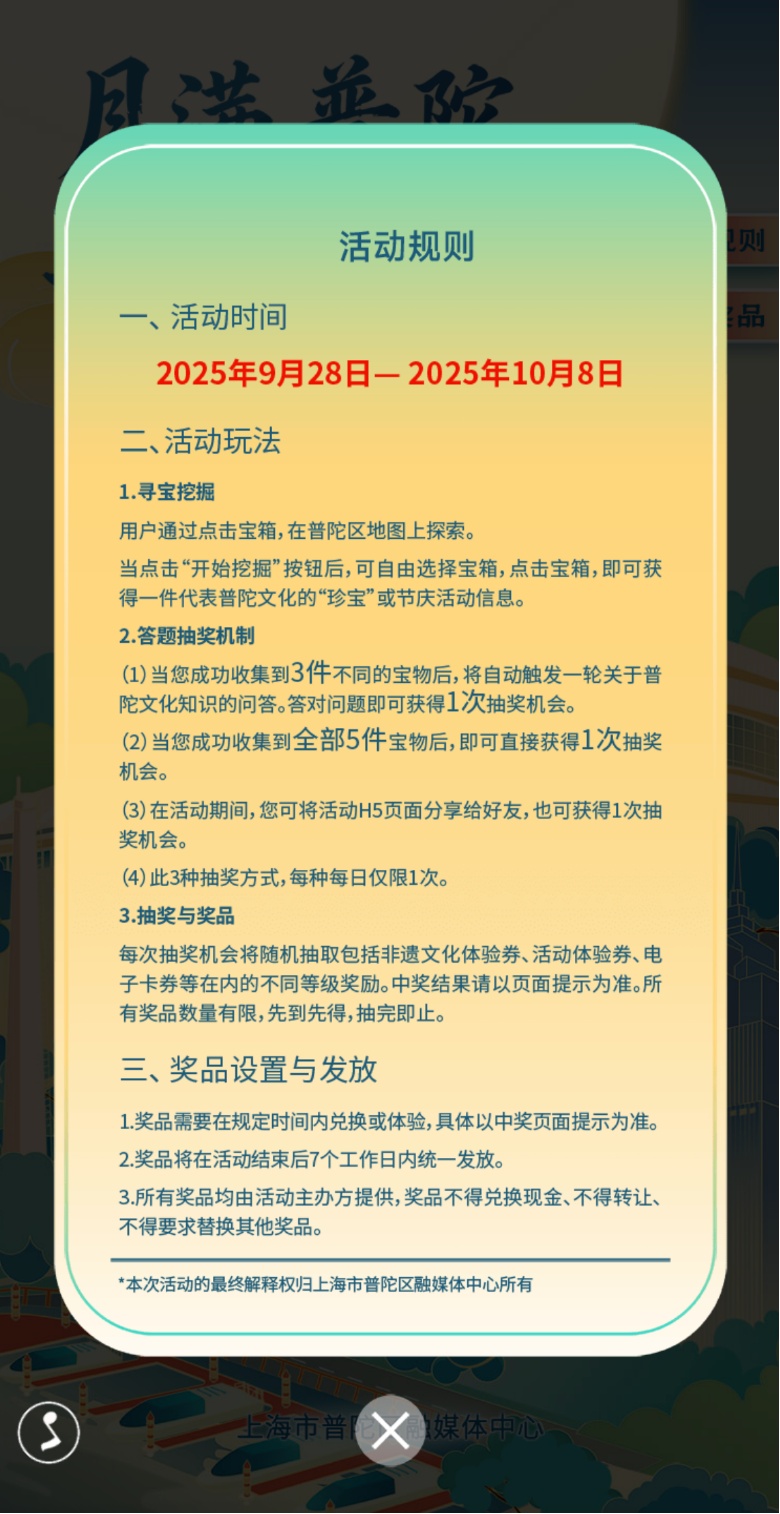 国庆与中秋将至,快来普陀参与琳琅满目的活动吧!在国庆中秋期间寻宝藏,得佳礼,跟着玉兔发现普陀更多好吃好玩好逛的!