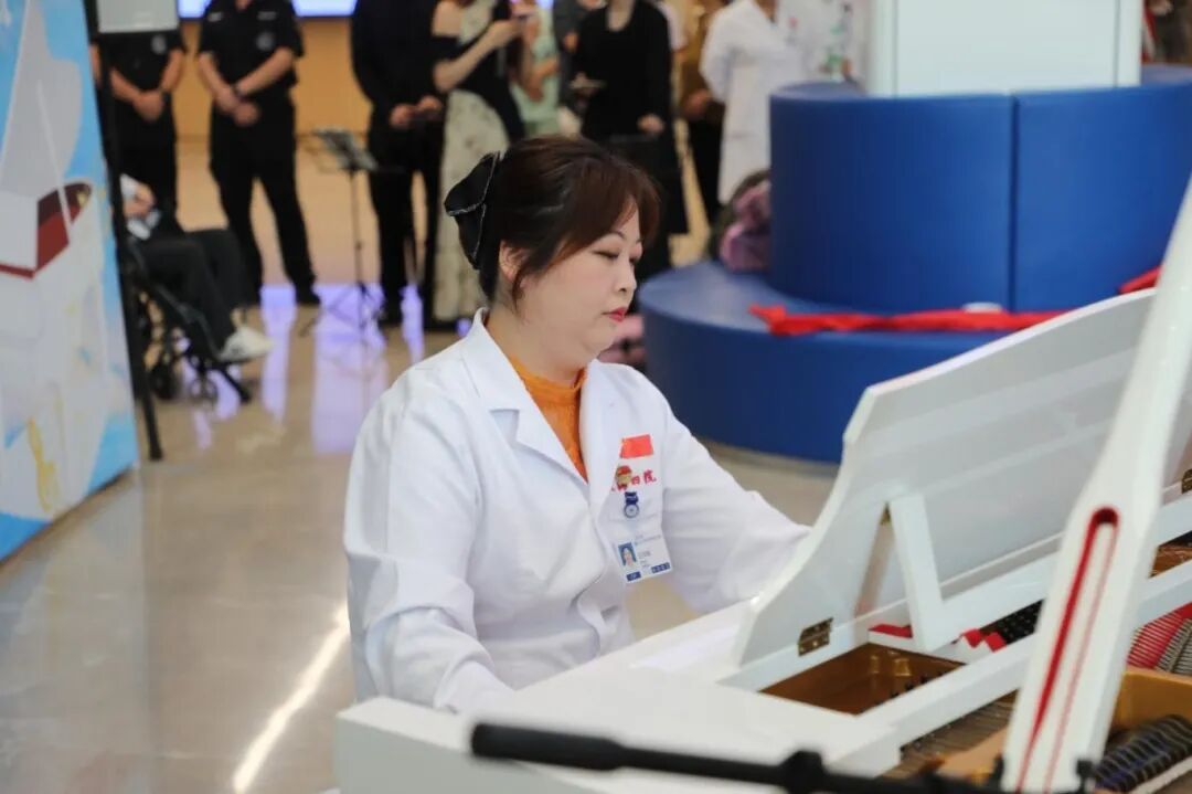 活动现场,白衣天使们暂时放下工作,或是端坐在钢琴前,用指尖流淌的旋律传递医者温情;或是“变身”歌手,独唱演绎李商隐经典诗作《锦瑟》,唱腔婉转间既有古典意境,更蕴含了医者对生命的温柔坚守。