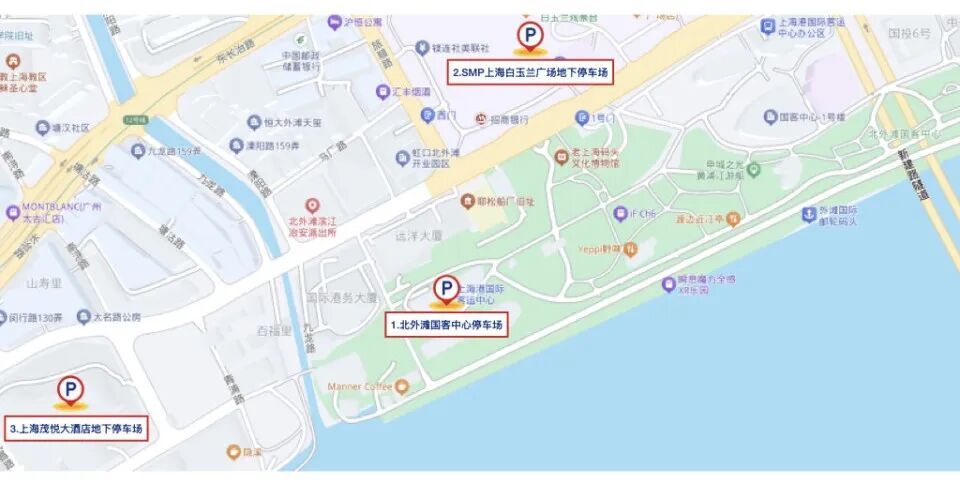 1、北外滩国客中心地下停车场(东大名路500号)468个,距活动主入口约100米
