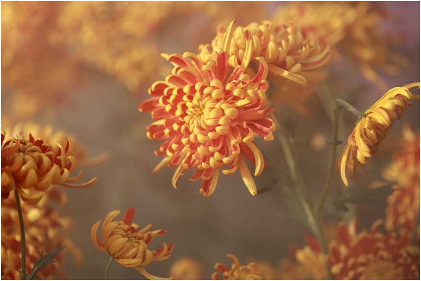 花海盛宴 秋日浪漫正当时 虽然最“出圈”的是月季,但事实上,放鹤谷长期对菊花这一草本植物进行研究和培育,本次推出“七彩幸福菊”通过生物染色技术人工培育,花瓣呈现彩虹渐变颜色,且有“幸福美满”“绚烂多彩的生活”的美好寓意。 展示区内被点缀得浪漫如画,好像一个转身就能与彩虹邂逅,徜徉于缤纷海洋中,每一步都能闻到淡淡的菊香。令人惊喜的是,菊花展首批活动将推出精品切花菊,让市民朋友观展同时,体验一回诗人陶渊明“采菊东篱下”的极致雅趣。