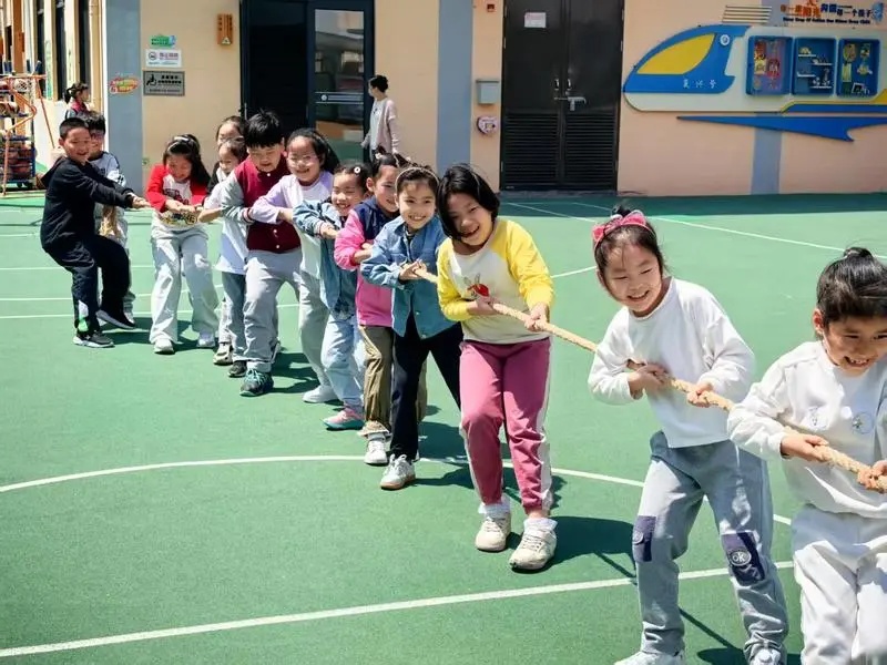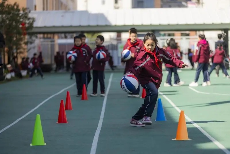空间延展了,活动的深度如何不断挖掘?学校构建“乐运动”课程体系,形成“基础+拓展+特色”三位一体架构。分年级开设体育活动日:周一篮球日、周二排球日、周三游泳日、周四花样跳绳日、周五网球日。课后服务推行“十选N”校本体育课,学生选学足球、武术、羽毛球、啦啦操等项目,重点打造排球特色,实现“一生多能一专长”。