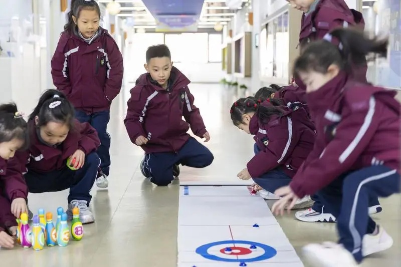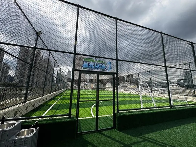 这片屋顶足球场,是该校合理规划校园场地空间,让有限资源的利用价值最大化的举措之一。“爱体育,真复三”这句响亮口号,已浸润到全体师生的行动中。今年初,学校整合“空间角落”,打造了一条“幸福步道”:课间时分,低年级学生在弄堂游戏、花样跳绳中挥汗如雨;高年级同学则在篮球场上奋勇争先;“上海老街”里的弄堂游戏趣味十足,打弹子、套圈子,感受老城厢的历史韵味;教学楼的走廊上,保龄球、冰壶游戏玩得正酣;偏爱宁静的同学,漫步一方种植园和蔬果区,也是课间放空身心的好去处。
