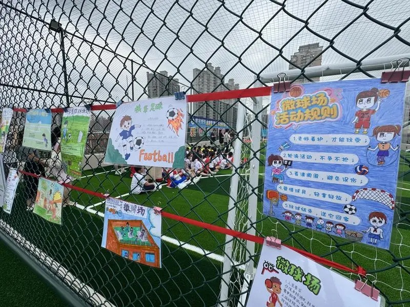 这是属于孩子们自己的球场,兴奋之余,小主人翁们还纷纷手绘了球场使用守则,共同约定守护好这片运动乐园。据悉,“星光球场”落成后,深受学生喜爱的“挑战校长赛”“党员导师带你玩”“爸爸体育明星赛”等趣味盎然的校园体育赛事,也将在这片全新的球场上欢乐延续。