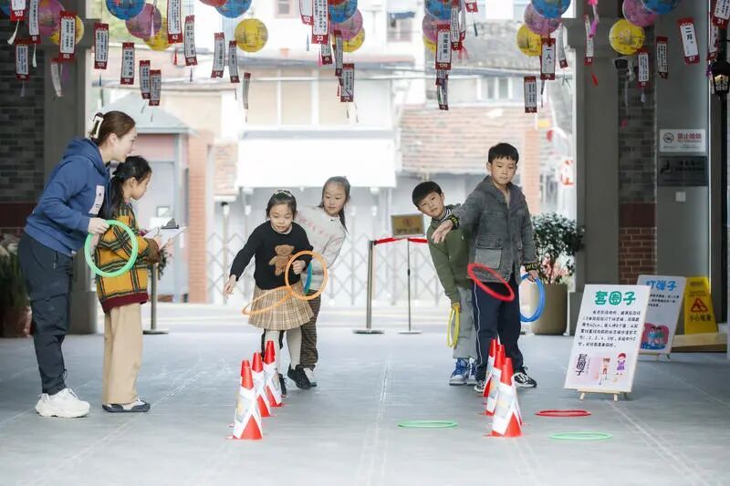 这片屋顶足球场,是该校合理规划校园场地空间,让有限资源的利用价值最大化的举措之一。“爱体育,真复三”这句响亮口号,已浸润到全体师生的行动中。今年初,学校整合“空间角落”,打造了一条“幸福步道”:课间时分,低年级学生在弄堂游戏、花样跳绳中挥汗如雨;高年级同学则在篮球场上奋勇争先;“上海老街”里的弄堂游戏趣味十足,打弹子、套圈子,感受老城厢的历史韵味;教学楼的走廊上,保龄球、冰壶游戏玩得正酣;偏爱宁静的同学,漫步一方种植园和蔬果区,也是课间放空身心的好去处。