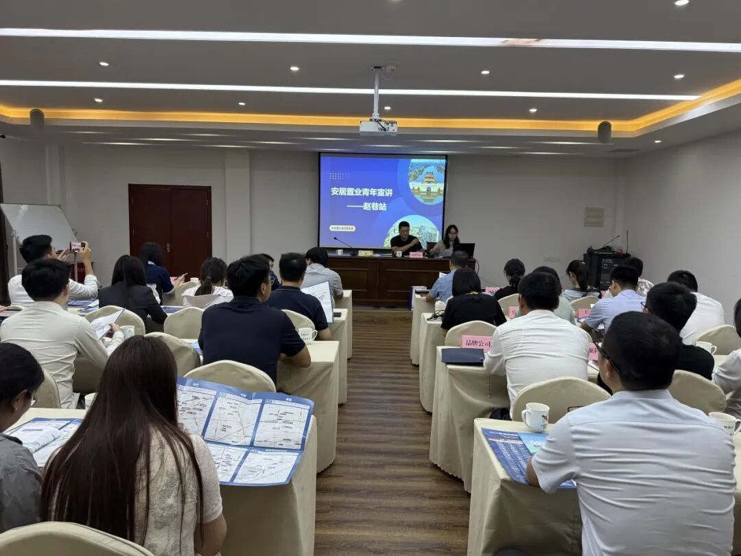 为推动“沪六条”“青浦十条”房地产新政落地,2025年9月25日,青浦区房管局团委牵头组建青年宣讲团,联合赵巷镇团委、区经委团支部、区人才工作局等单位,集结青年骨干,在赵巷镇政务中心举办“安居置业青年宣讲团——赵巷站”活动。长三角赵巷新兴产业经济发展(上海)有限公司、上海公牛信息科技有限公司、山姆(上海)超市有限责任公司、中铁四局集团上海工程有限公司、上海元祖梦果子股份有限公司、上海信谊万象药业股份有限公司等区域重点企业代表,上海农商银行青浦支行负责人,以及国贸虹桥璟上、华发虹桥四季项目方等多方齐聚,共学新政、共话安居。