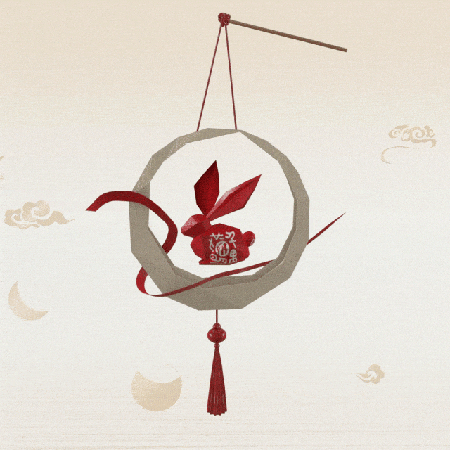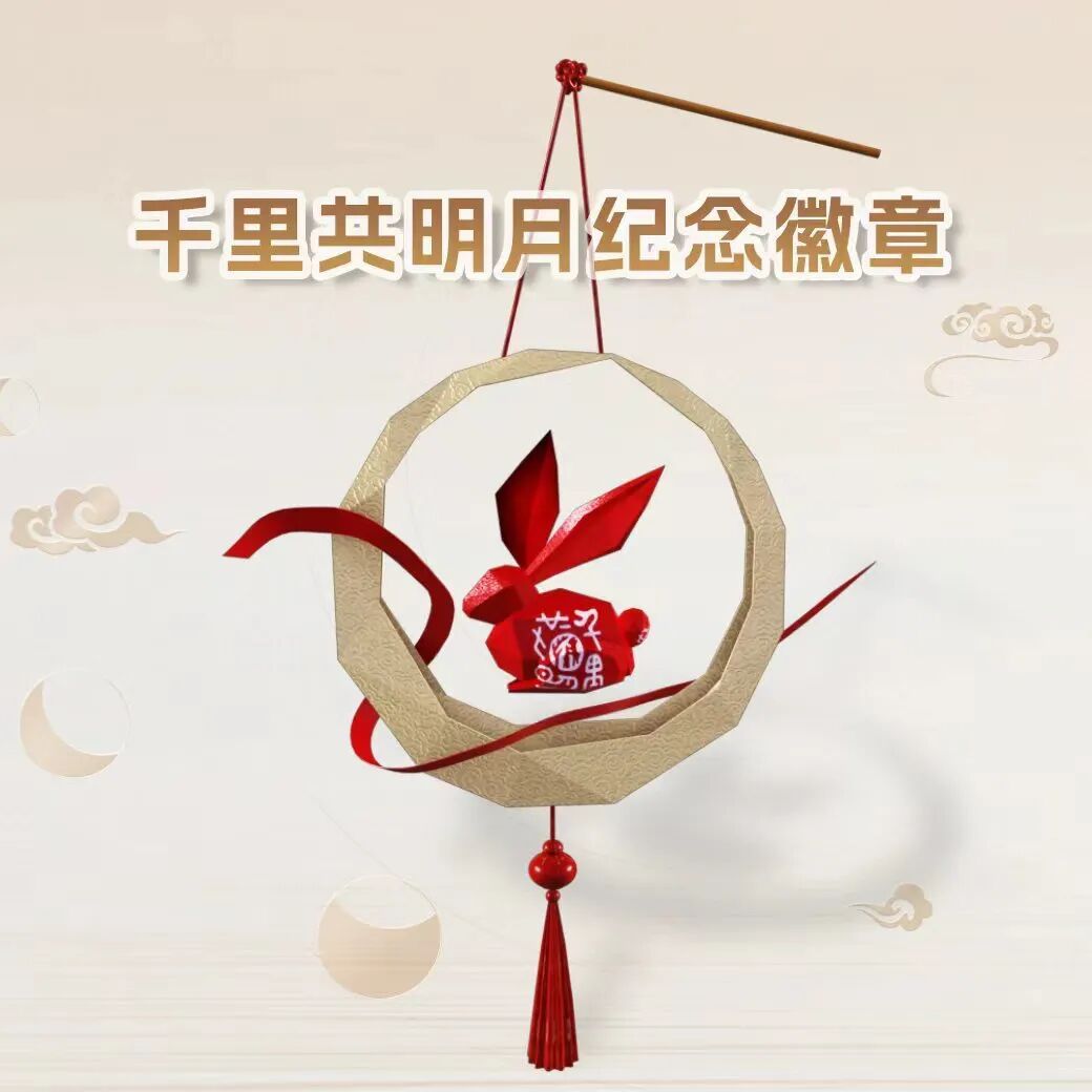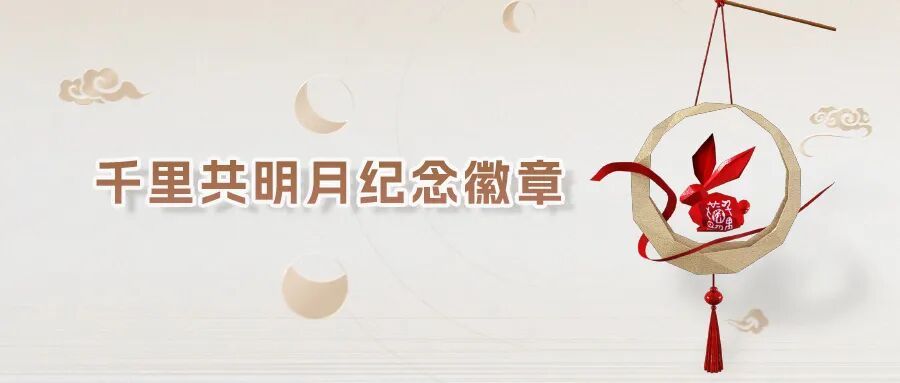 本期徽章以传统兔子灯为灵感,将那份憨态可掬的形态精心雕琢。乖巧的玉兔怀抱圆月,仿佛承载着所有美好的祝愿。兔身印章来自“千里共明月”木质印章,是北宋末年钱昶十五件木质组印中的一件。中间的“月”字,富有创意地以一个圆形代指圆月,里面还刻有桂树和捣药的玉兔,生趣盎然。