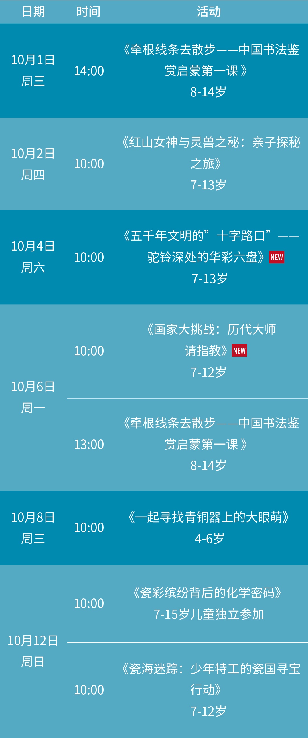 还有趣味瓷器彩绘体验《瓷海迷踪:少年特工的瓷国寻宝行动》,及青少年可单独参加的《瓷彩缤纷背后的化学密码》,快来解锁金秋10月的别样精彩!