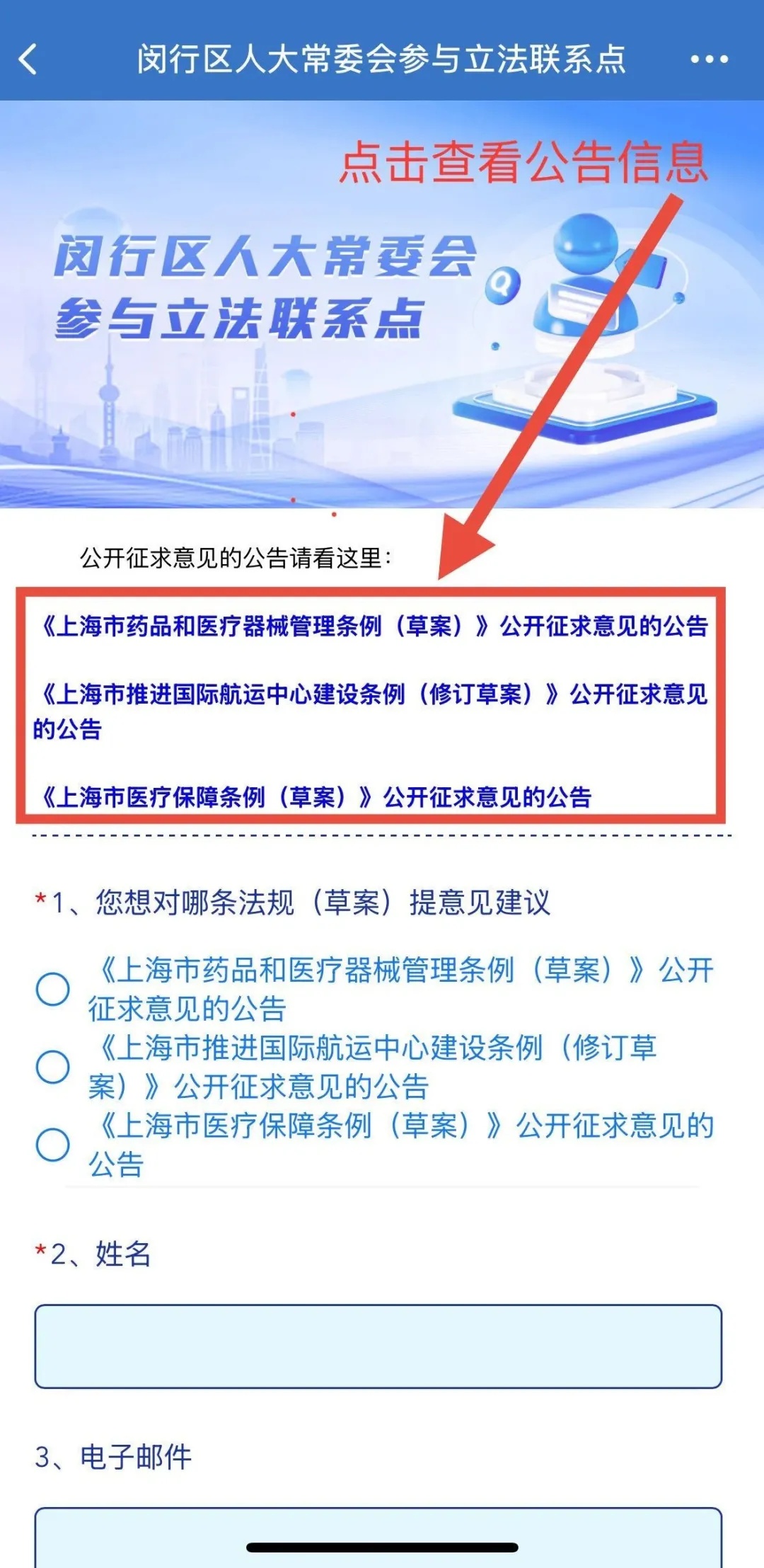 你可以在“今日闵行”App立法征询渠道提出相关意见和建议。征集到的意见建议将及时向市人大常委会反馈,以便作进一步研究修改和审议。具体方法