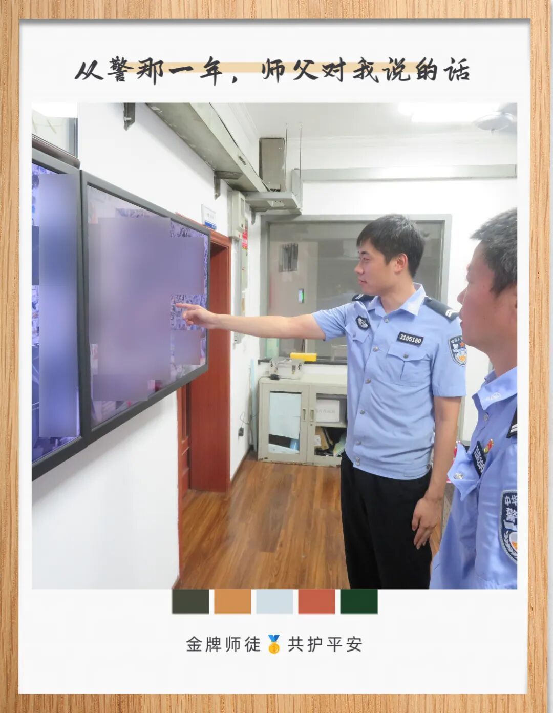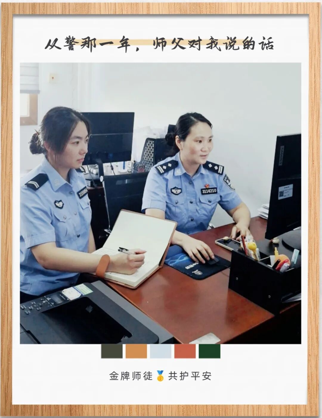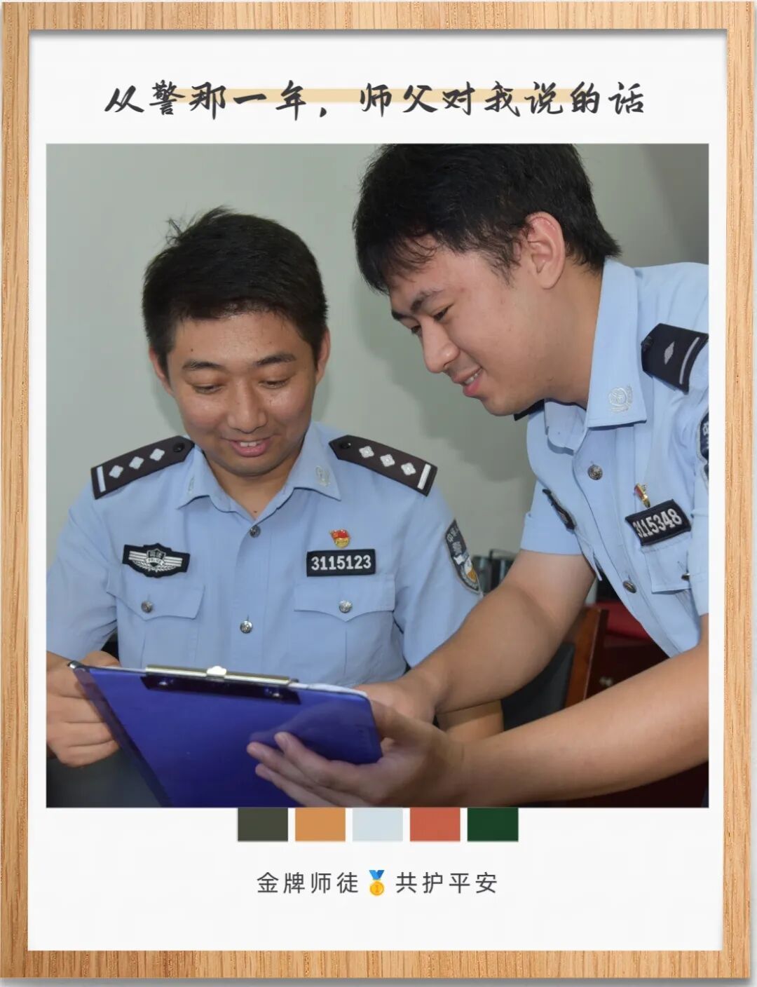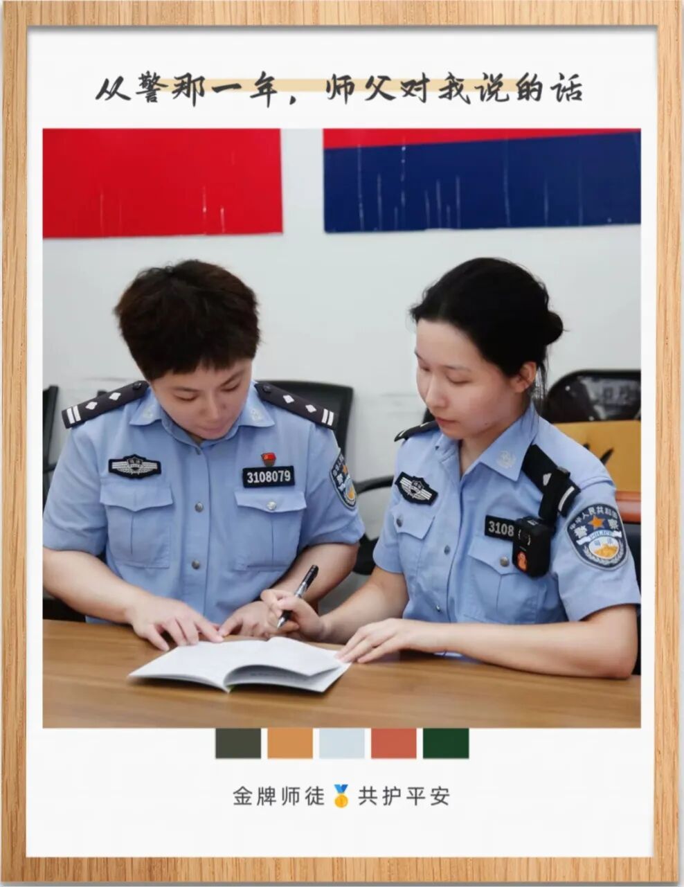 刚入警时我做事毛躁,他总一边说“小事要做扎实”,一边手把手教我规范流程,一遍不会就再来一遍。他常说:“要牢记队训,每一件小事,都连着监管安全和教育改造成效,马虎不得。”如今我也成了新警的师父,而队训和师父的话,我也会传下去。
